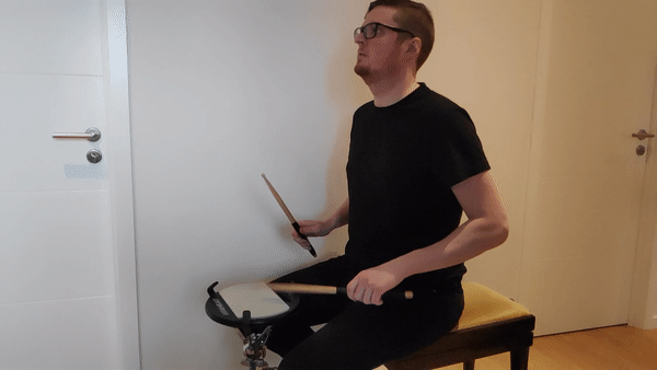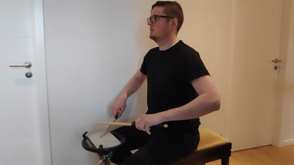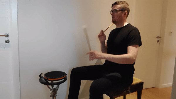 The snare drum roll utilises internal and external rotation of the forearm. The muscles responsible for this motion are the rotator cuff and the deltoid. However, the flexors and the extensors of the forearm are also working to hold the wrist stable. Here the back muscles also plays an important role in keeping the shoulder blade stable.