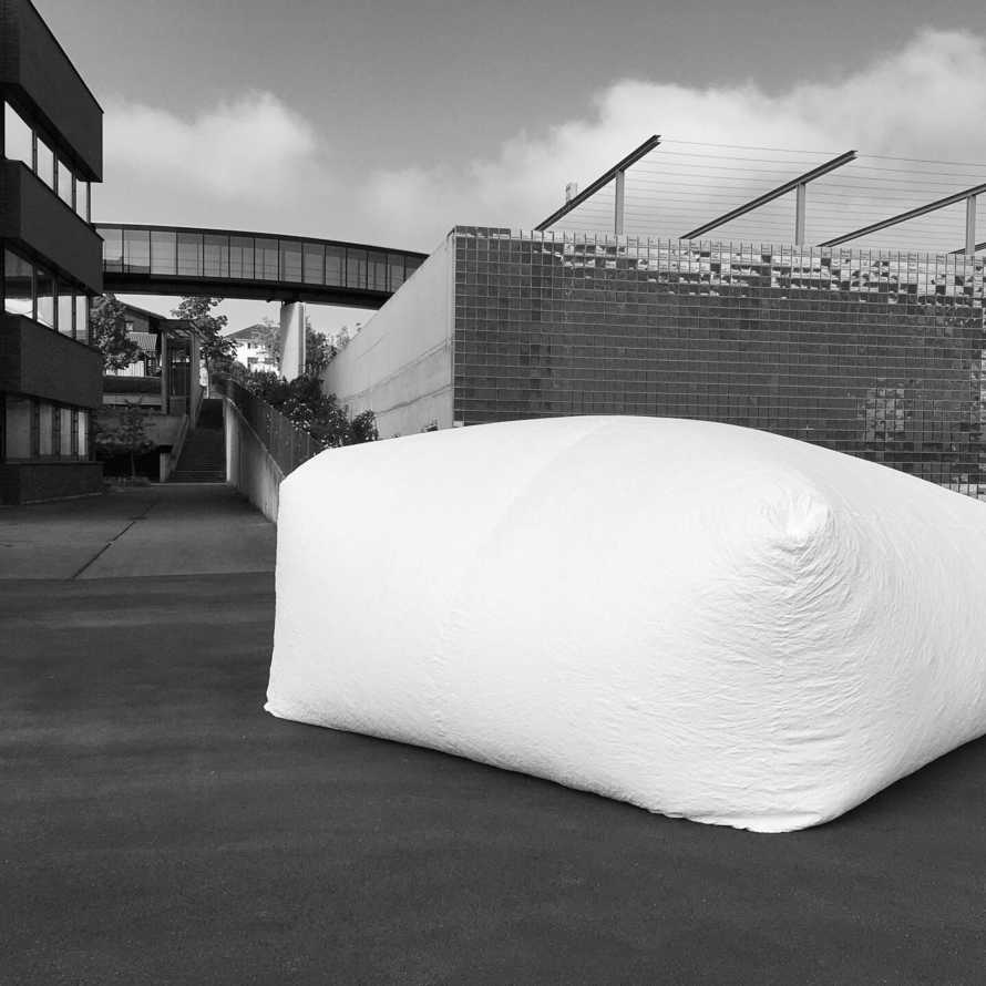 Ein szenografisches Luftobjekt, welches ich schon länger in immer unterschiedlichen Kontexten auslote, diente als performatives und visuelles Verbindungselement für eine Gesprächsbrücke. Für die Dauer von vier Stunden isolierte ich mich im geschlossenen Luftobjekt, stellte in künstlerischer Weise die Gesprächsbrücke her und konnte selbst nur auf digitalem Weg kommunizieren. Es interessierte mich, wer sich wie beteiligen würde, wie zugehört und diskutiert werden würde und was für Resultate aus der Aufzeichnung hervorgehen könnten.