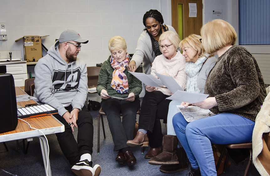 I set up a steering group consisting of a membership who had influential working connections in the arts, cultural and music education sectors within Birmingham. Their role was to provide in-kind support based on their experience of working in community settings, public art, music events, and education. Initially, the steering group met every four to six weeks to ensure we actioned our targets. They also provided encouragement for the preparatory stages of the music programme. The steering group membership expanded and changed during project delivery. Once for-Wards was in motion, the group met quarterly and during important stages of the programme to work as a critical friend and provide input for strategic decisions.