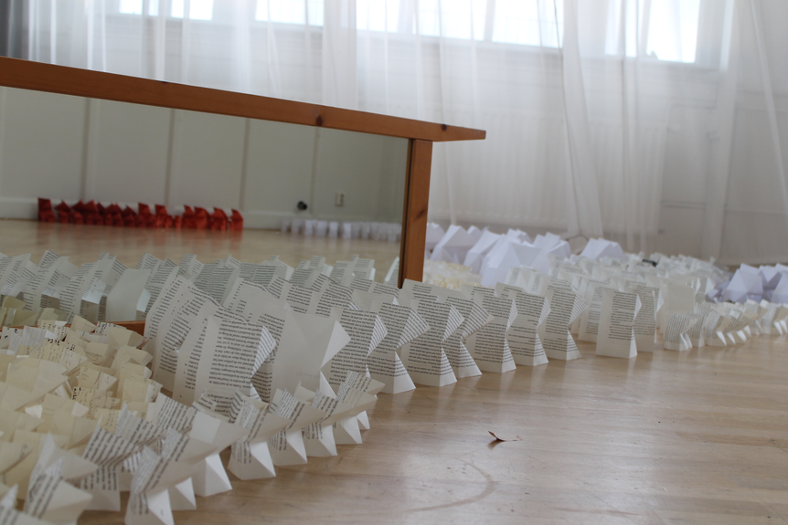- Folding with me in a dialogue. Whist folding one Saturday evening I had someone approach me and ask to help. I needed to think about this . . . do I let other people help me fold? The answer is/was yes. This was a decision also close to my personality, that I could very potentially be a hypocrite about. Accept help. Welcome people who want to give you their time and energy. The folding sessions offered an opportunity to connect and communicate with people about difficult topics, and the dark side of human experience in an environment that is creative and beautiful.