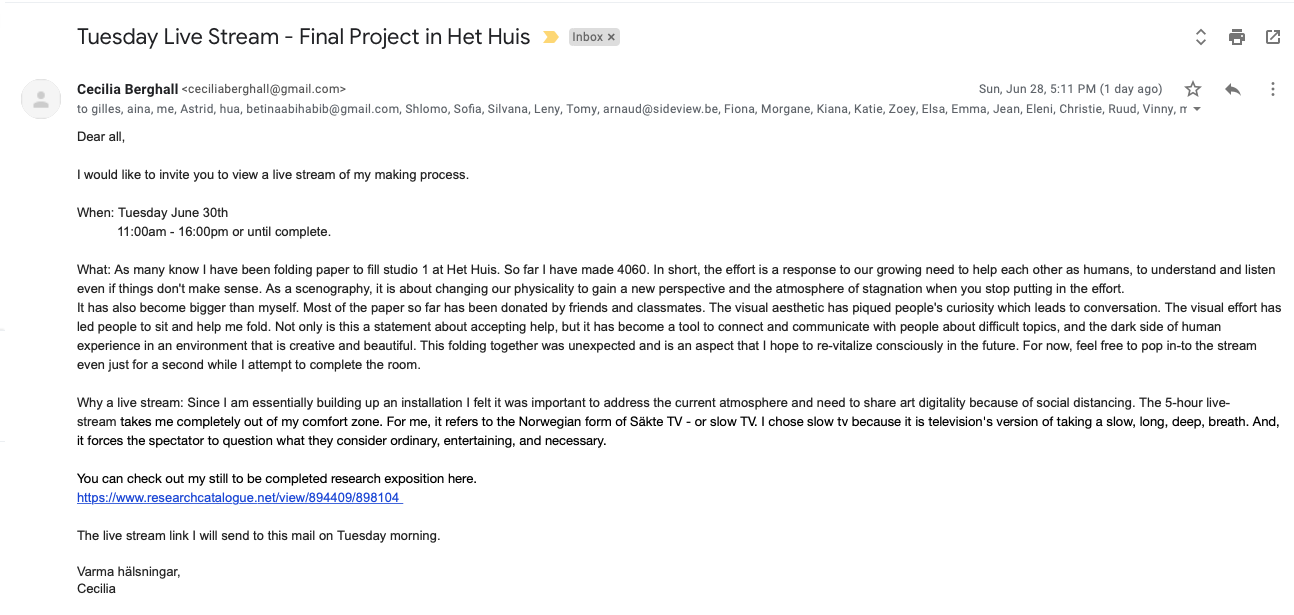 Dear reader, This is an exposition detailing the reality of how making art can produce and cultivate thought. It is a project that started with a methodical approach to natural light and aesthetics, that due to my empathetic response transformed into something bigger than myself. It became a metaphor for changing perspectives, getting out of comfort zones, putting in the effort, humans helping humans, and spreading ideas through aesthetics and curiosity. It has become a tool to connect and communicate with other people about difficult topics, and the dark side of human experience in an environment that is creative and beautiful. The exposition is ordered in linear chapters that you can access through the contents. Since the project itself has become a vessel for a number of topics all extremely significant and important. I have added resources as the last chapter. Nothing within the chapters will be discussed in excess but the exposition does contain the mention of suicide, sexual assault, and racism. - C