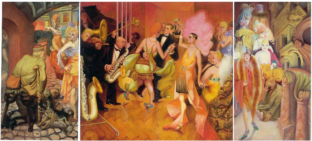Otto Dix (1891–1969): Der Krieg Triptychon / War Triptych (1929–1932). Oil on wood, middle panel 204 x 204 cm, side panels 204 x 102 cm, predella 60 x 204 cm. Galerie Neue Meister, Staatliche Kunstsammlungen Dresden, Germany.