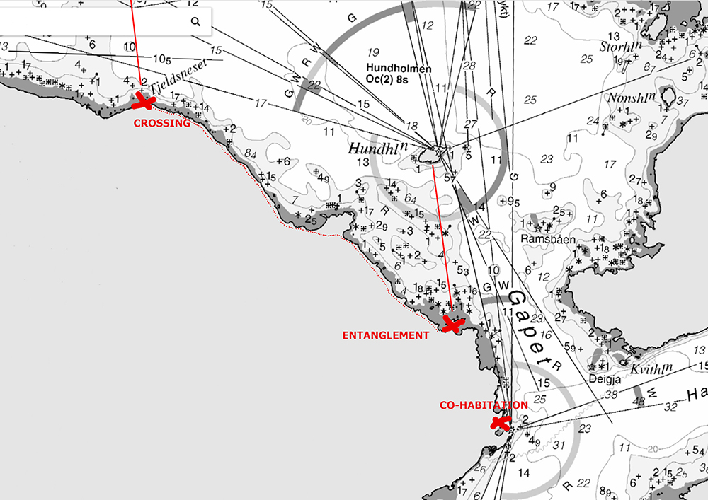 The cards were played out in a series of different settings from two to twenty-five participants as experimental set-ups for testing our relationship to verbal and visual information in (and under the pressure of) certain social contexts with a varying set of rather open rules, and followed up by conversations on content and format of the event. The cards were applied in study-groups with mixed humanistic background, with marine biologists, whose work was documented in some of the images, with the audience in a public talk on the encounter of art and science in the arctic, and in various public or intimate art contexts.