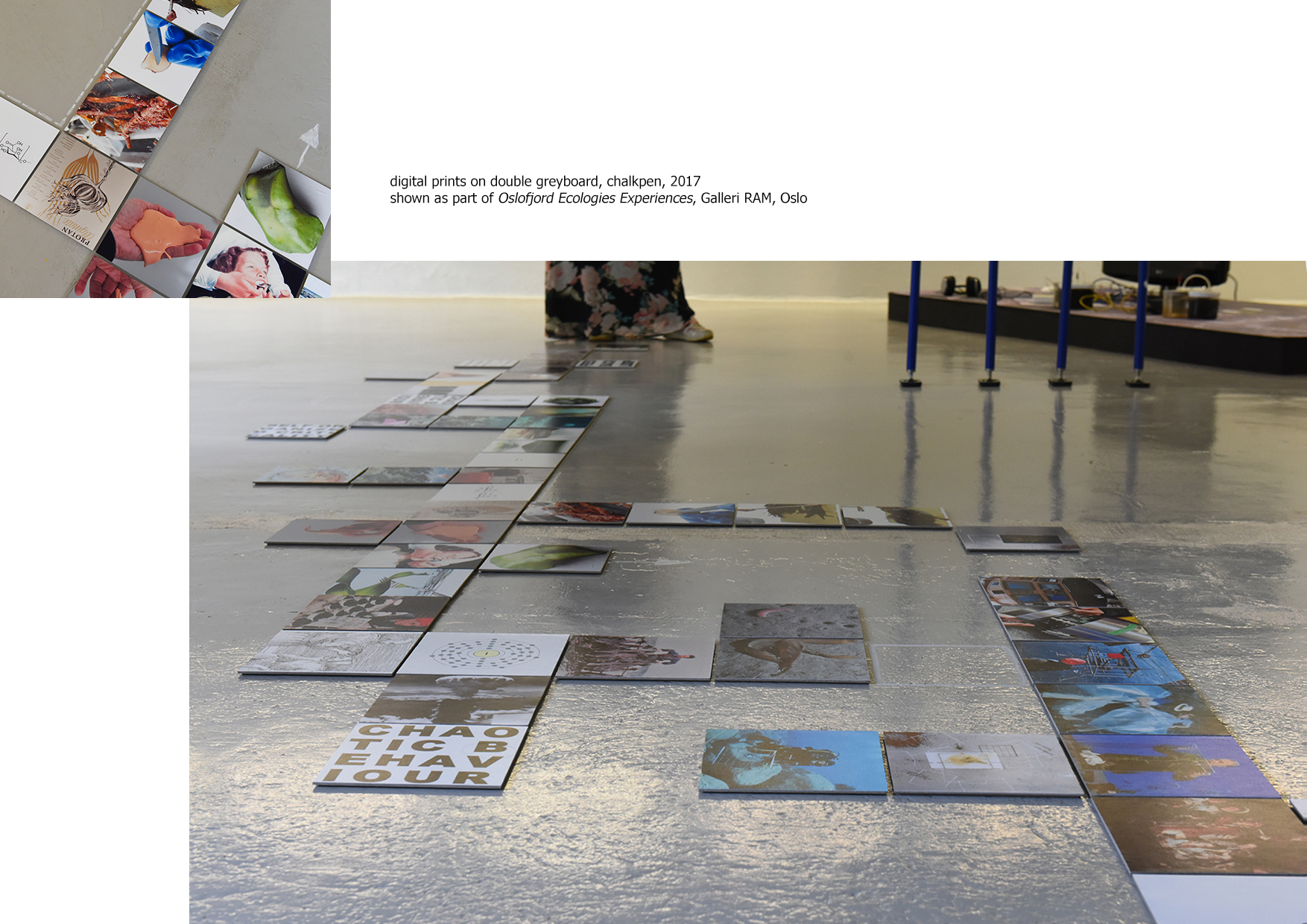 A slightly revised version of the >>> text was published in 2020 in Oslofjord Ecologies – Artistic Research on Environmental and Social Sustainability, edited by Kristin Bergaust, Rasa Smite and Daina Silina. A documentation of one cardgame session in a series of interval photographs, accompanied by the same voice-over, forms a >>> videowork.