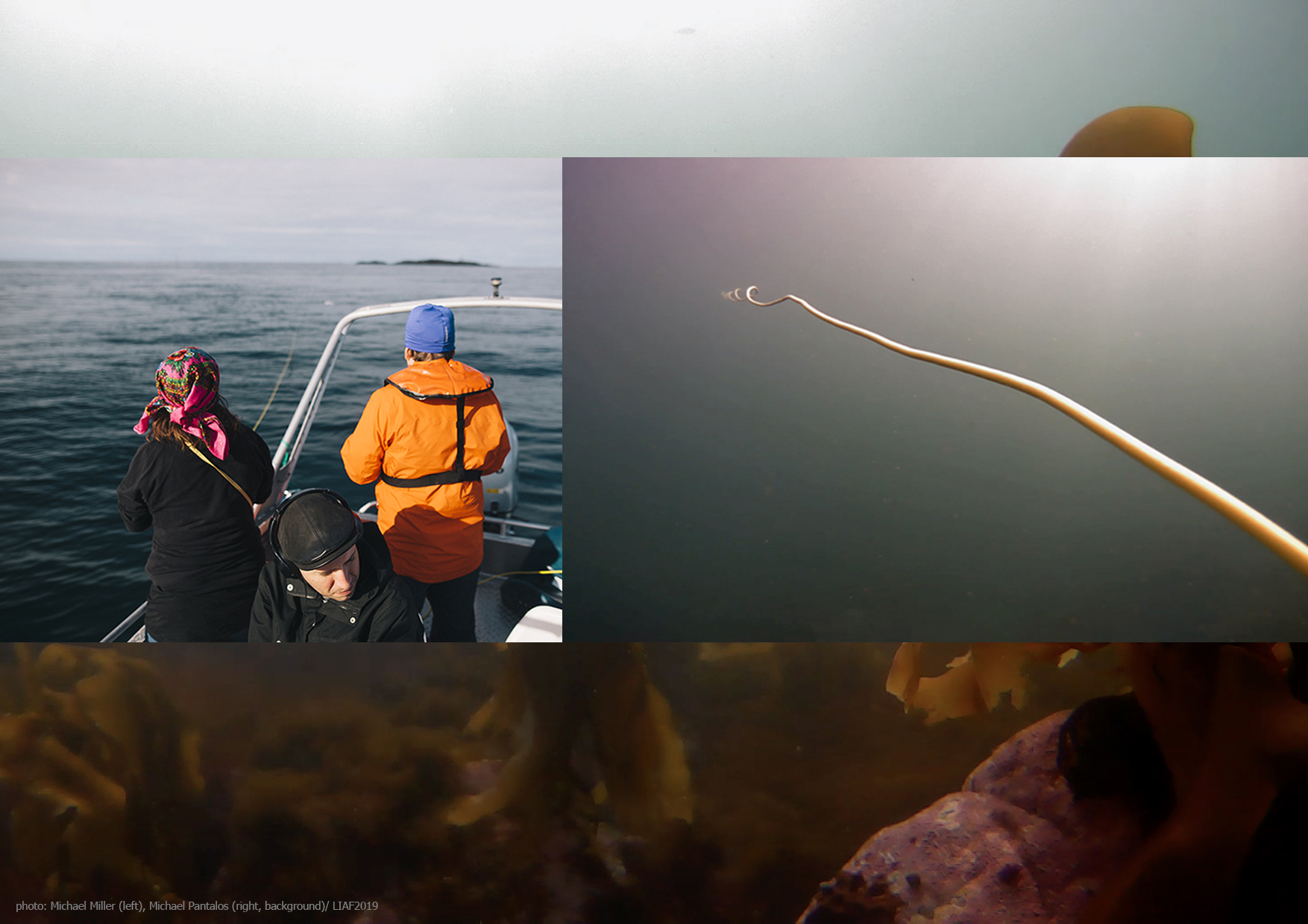 Bruno Latour uses the term provocation in its more literal meaning: the production – or calling to the fore - of voices. In question is how to give voice to things, which have been regarded to have no speech. Algae have experienced a tremendously growing interest in various fields and in relation to a potentially innovative future. The work assembles a collection of images drawn from research on the internet, in books, in the studio and in the field – looking at economical and idealistic interests in algae, and following marine biologists with various tasks in their effort to give speech to algae and to those who form their wider community. Algae, instruments, water, humans and physical parameters come here together in an always-changing complex system.
