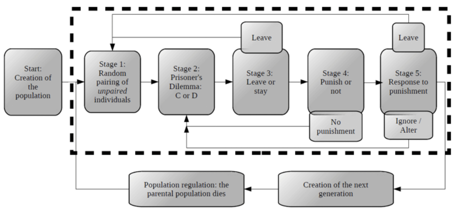 * Dieser Text wurde mir von Matthias Wubs zugesandt. Matthias Wubs arbeitet in seiner mathematischen Versuchsanlage mit dem «Prisoner‘s Dilemma Modell», mit welchem verschiedene Kooperationsstrategien und deren jeweiliger Erfolg berechnet werden können. Es liegt in der Natur eines Modells, dass die darin verwendbaren Parameter stark vereinfacht sind: kooperieren oder nicht, verlassen oder bleiben, bestrafen oder nicht, seine Strategie ändern oder nicht. Die «Akteure» sind reine Datensätze («Individuen»), die mit bestimmten Verhaltensmustern ausgestattet und dann aufeinander losgelassen werden. Den Rest übernimmt der Rechner. Das Ziel von Wubs‘ Forschung ist, dieses Modell mit Hilfe von Tierbeobachtung in der Natur zu überprüfen und danach gegebenenfalls anzupassen. Da ich mich mehr für die Erforschung des menschlichen Kooperationsverhaltens interessiere, habe ich ihn um Informationen aus diesem Bereich gebeten.
