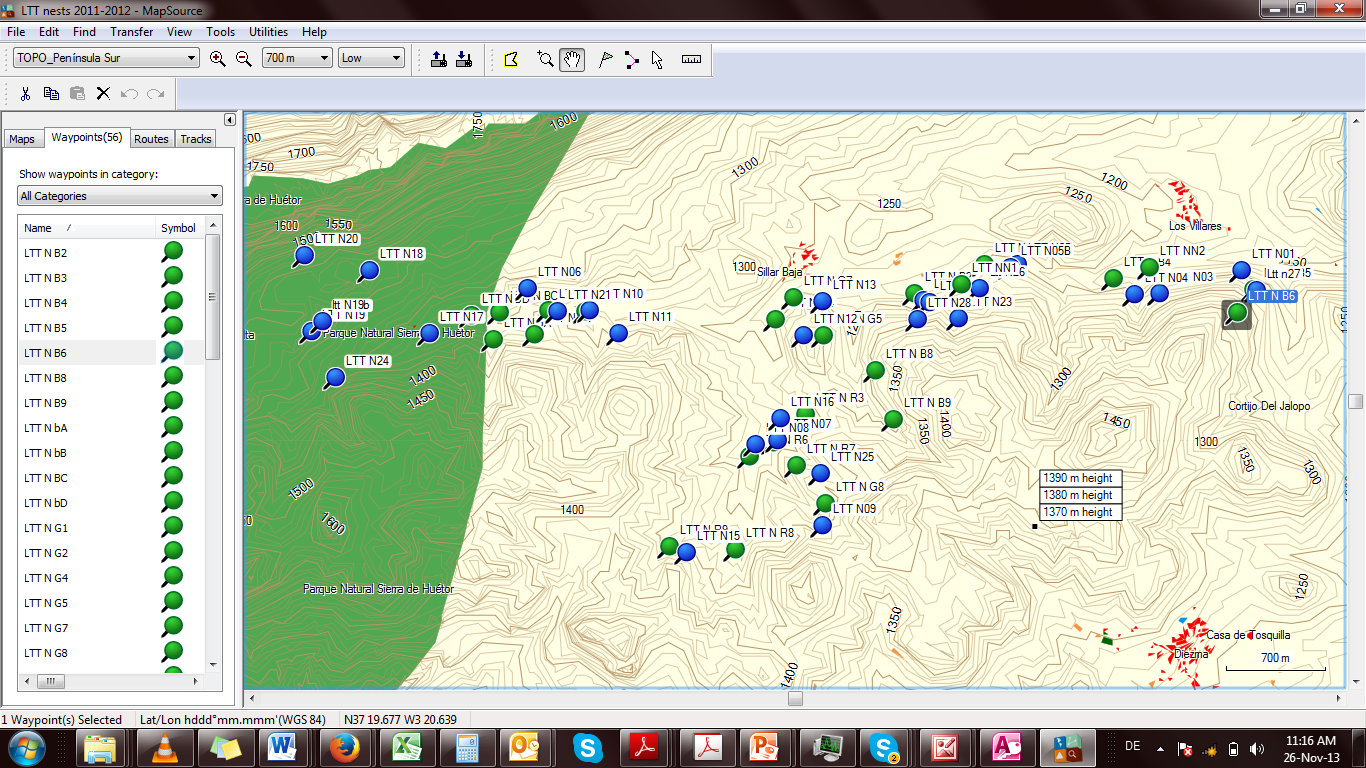 Bereits im ersten Schritt der Feldarbeit sind zahlreiche Übersetzungen wieder zu finden: der Gesang der Vögel wurde in digitale Daten, die visuellen Eigenschaften der Tiere in Fotografien und das Verhalten in Form von Beschreibungen wurde in Sprache und Abkürzungen (Codes) übersetzt. Die digitalen Stecknadeln sind ebenfalls eine Übersetzung der Nester in Codes. Die topografische Darstellung ist die Übersetzung der Berge und Täler in Linien und Farben. Nicht zuletzt ist dies alles eine Übersetzung in einen programmierten Code, der die Darstellung der Karte auf einem GPS System erst ermöglicht. Wir haben es hier bereits mit einem komplexen Zeichensystem zu tun, das zahlreiche Informationen in visuelle Elemente übersetzt. Auch wenn das GPS System noch keine Informationen über die Experimente mit den Tieren enthält, ist dieser Schritt Voraussetzung, der erst alle weiteren Untersuchungen des Forschers ermöglicht. Es gibt eine klare Ordnung und Struktur vor und begrenzt den Untersuchungsraum von Beginn an auf eine festgelegte Auswahl der Nester.