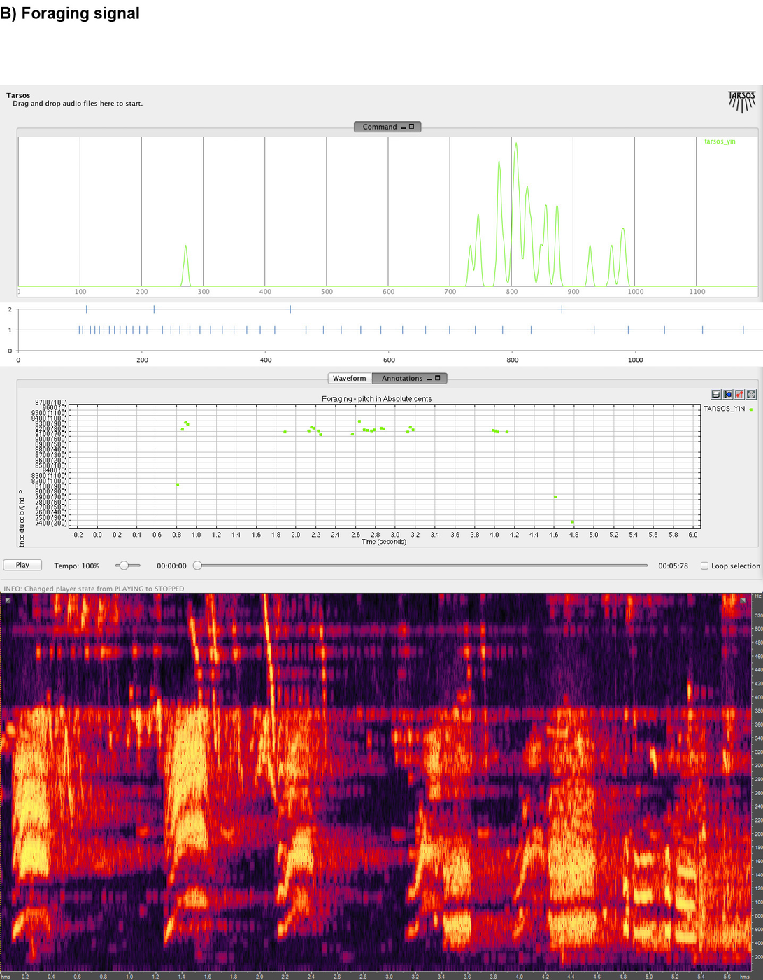 B) The second step was to insert all the spectrograms into a prototype program named tarsos. This program allowed me to analyze the sounds in a more detailed