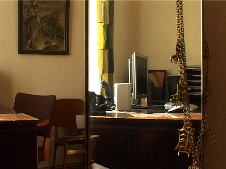 Towards the end of editing the text, I wrote in a grammatically more correct form, because colloquialisms undermined the credibility of the dialogue on paper. I have nevertheless sought to preserve the rhythm and sentence structures of the original spoken version. I have at times also left some professional jargon in the text. In my mind, I hear the text as if it were read aloud, a kind of radio play. I would in fact like to present the dialogue (or parts of it) in a live performance alongside the Room video. I have for a long time been intrigued by the idea that the analytical part of artistic research could itself be presented in the form of an artwork.