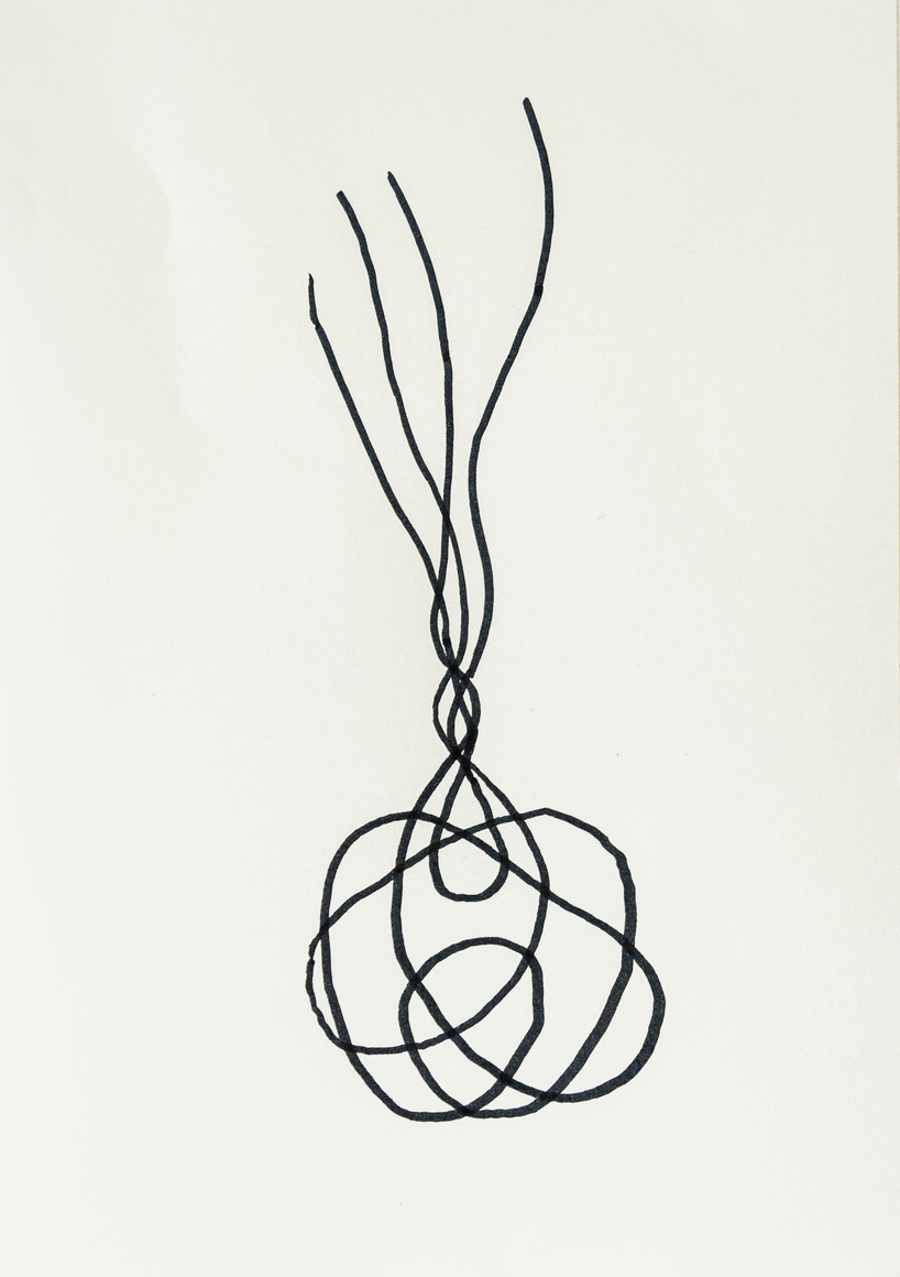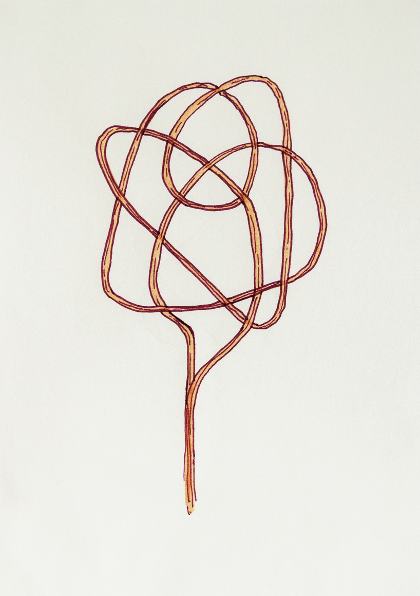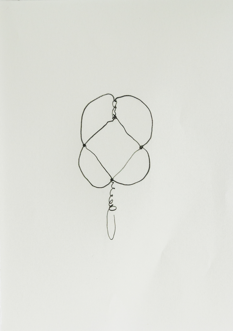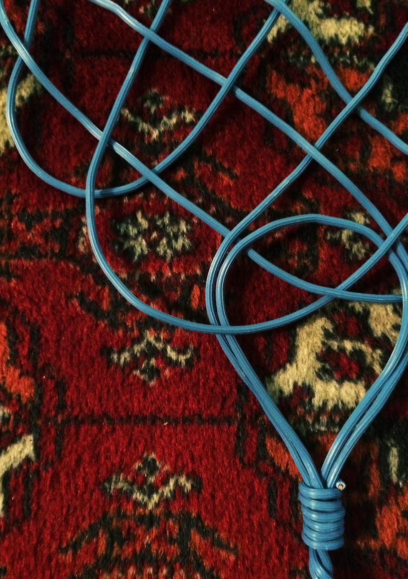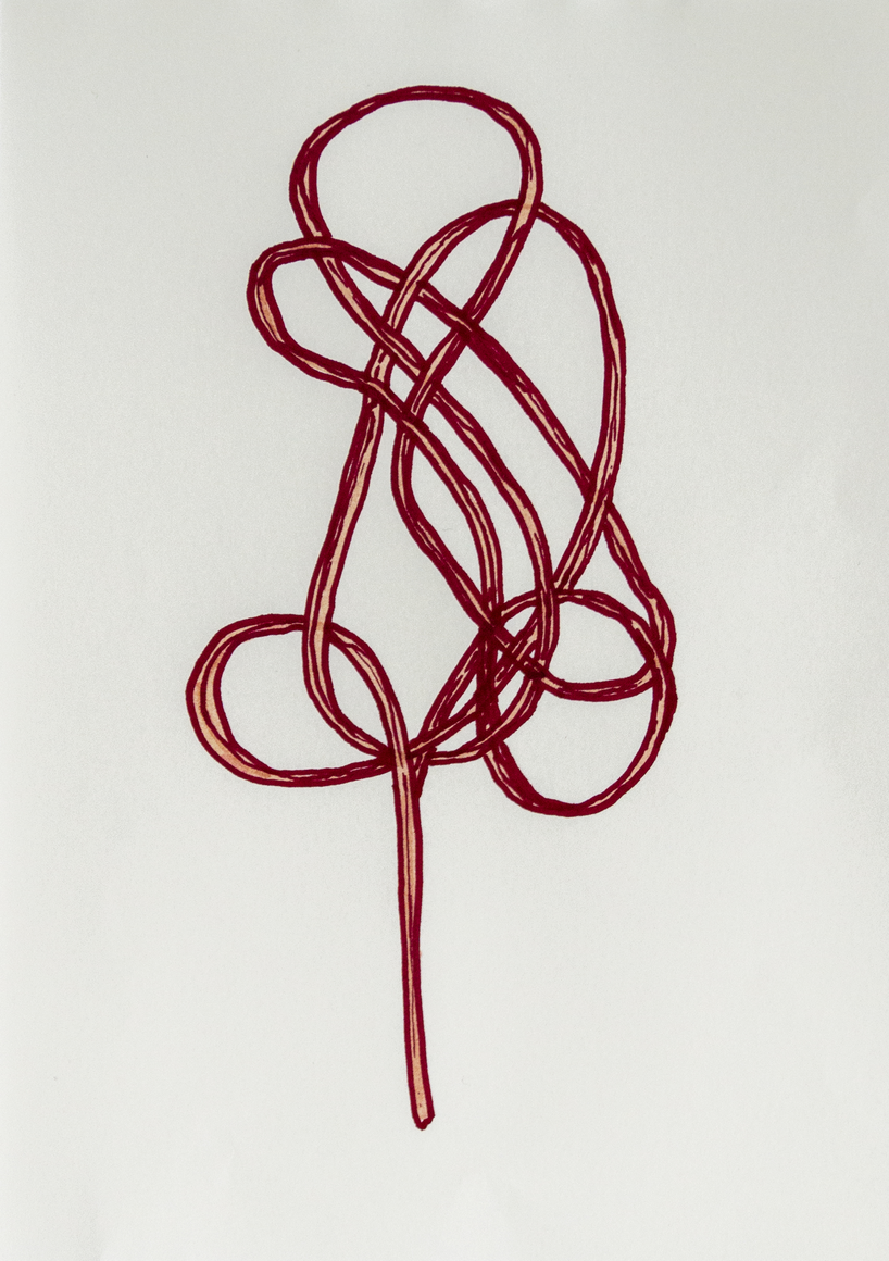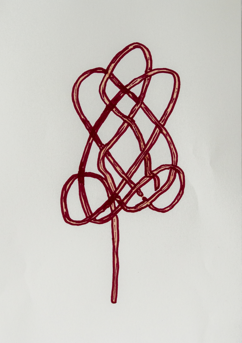 The courtyard, laundry room, and areas for beating carpets are collective facilities in the private sphere of the home. In Stockholm you can find carpet hangers in connection to many apartment blocks even though they are very seldom used nowadays. The act of whipping carpets is an act that aims to get rid of the dirt – the remnants of life. Cleaning is a repetitive work, where something needs to be done over and over again without it producing something new. The project Piskan ställningen consists of an essay, sound pieces, and sketches in different materials and is divided into three parts; the one who beats, the beater itself, and that which constitutes a stand for the beating. The various associations to the carpet hanger and the carpet beater form the basis of the project that centres around questions concerning repetition and productivity, place and time, the boundary between the public and the domestic sphere, and how dangerous the pursuit of alleged purity, hygiene, science, and light can be. Through text, sound and images, personal and collective memories, and the object's associations regarding reproductive labour, city planning, violence, the welfare project, and childish games are intertwined. The material also contains other associations to control and power – with the whip as a means of threat and punishment, and an exploration of different forms of emptiness in relation to architecture, social structures, and mental space. Through a younger and an elderly woman's narrative voice, we follow an associative thought chain that interweaves the public, the domestic, and a bodily sphere. The setting is a society where she comes home from work to yet another form of monotonous routines, where cars get burned down, and tables are placed under vases, whilst someone has been digging a hole down in the city. Through sketches in different materials, I approach the carpet beater by exploring its shape. My attempts to repeat the knots lead to a series of variations on the memory of whips where mistakes constitute the basis of new forms. In the project repetition and variations in sound, text, and drawing becomes another way of approaching repetitive work
