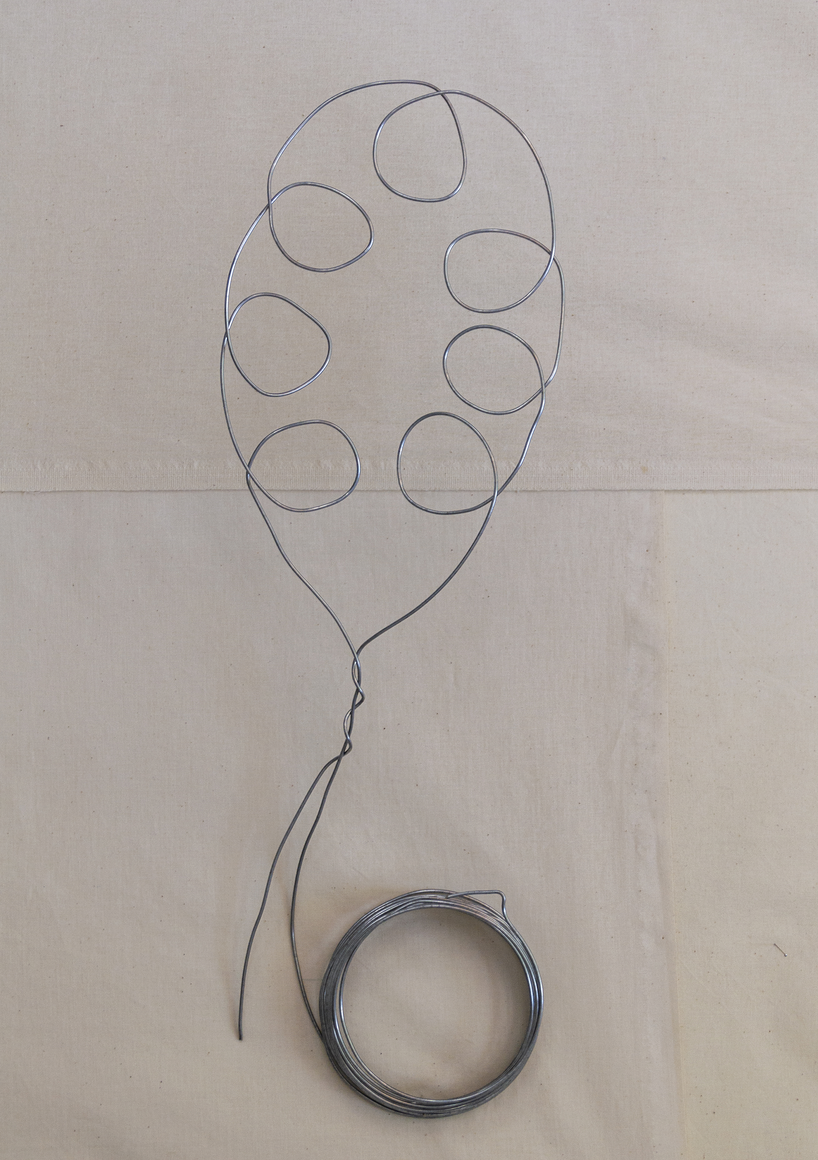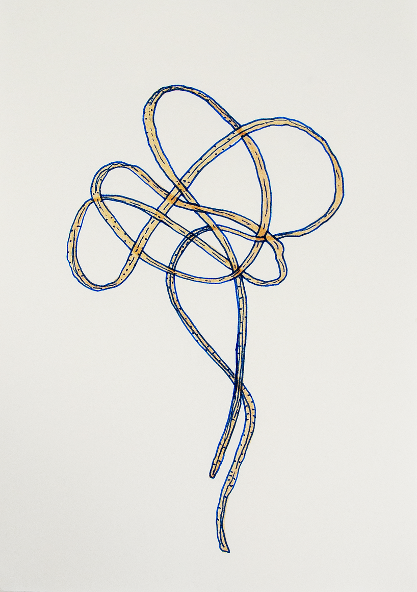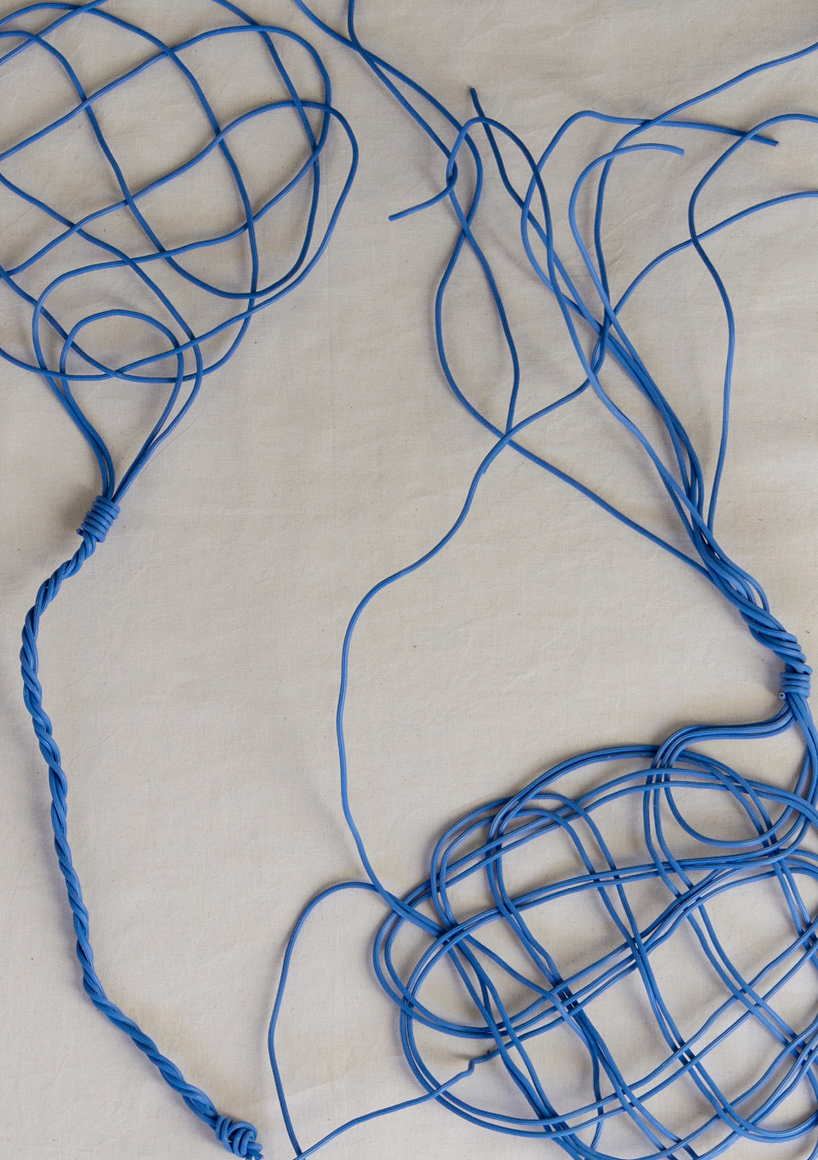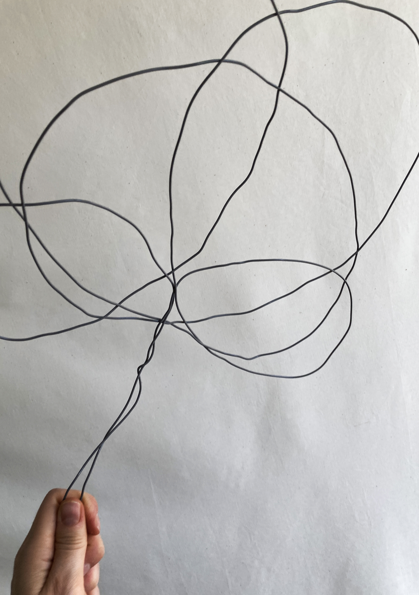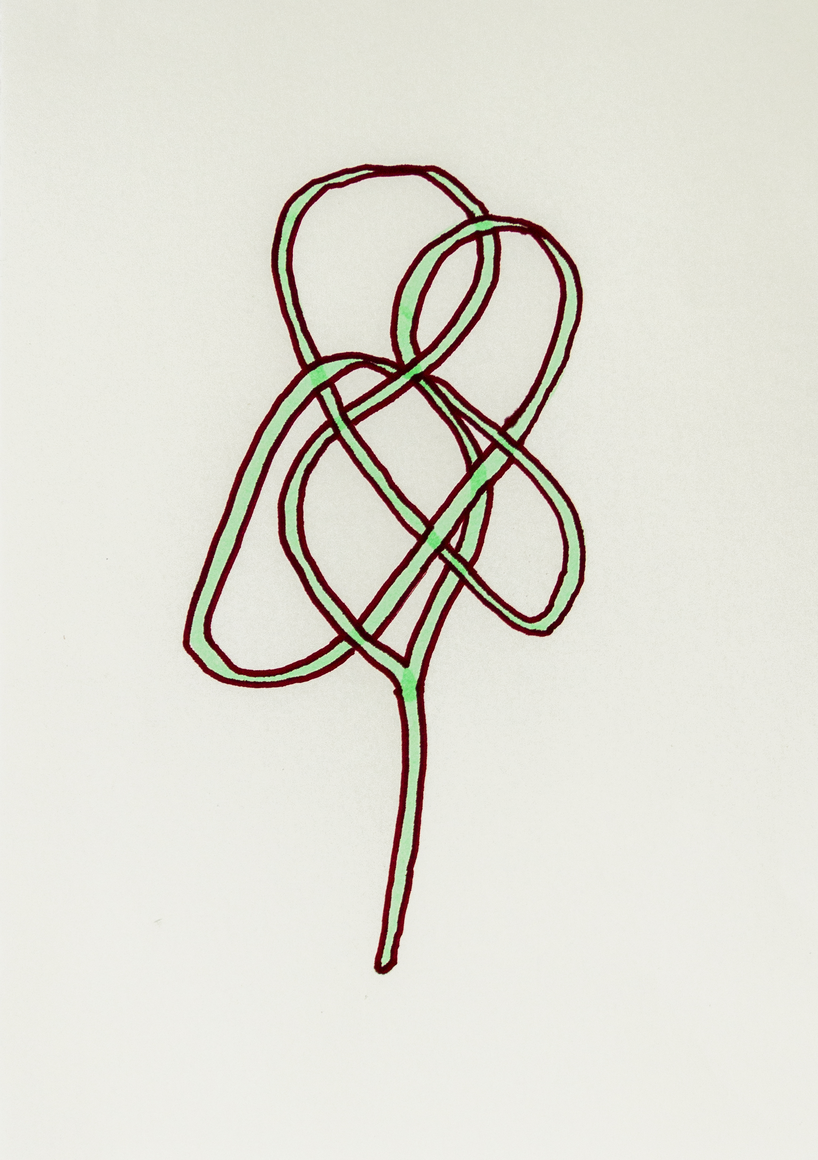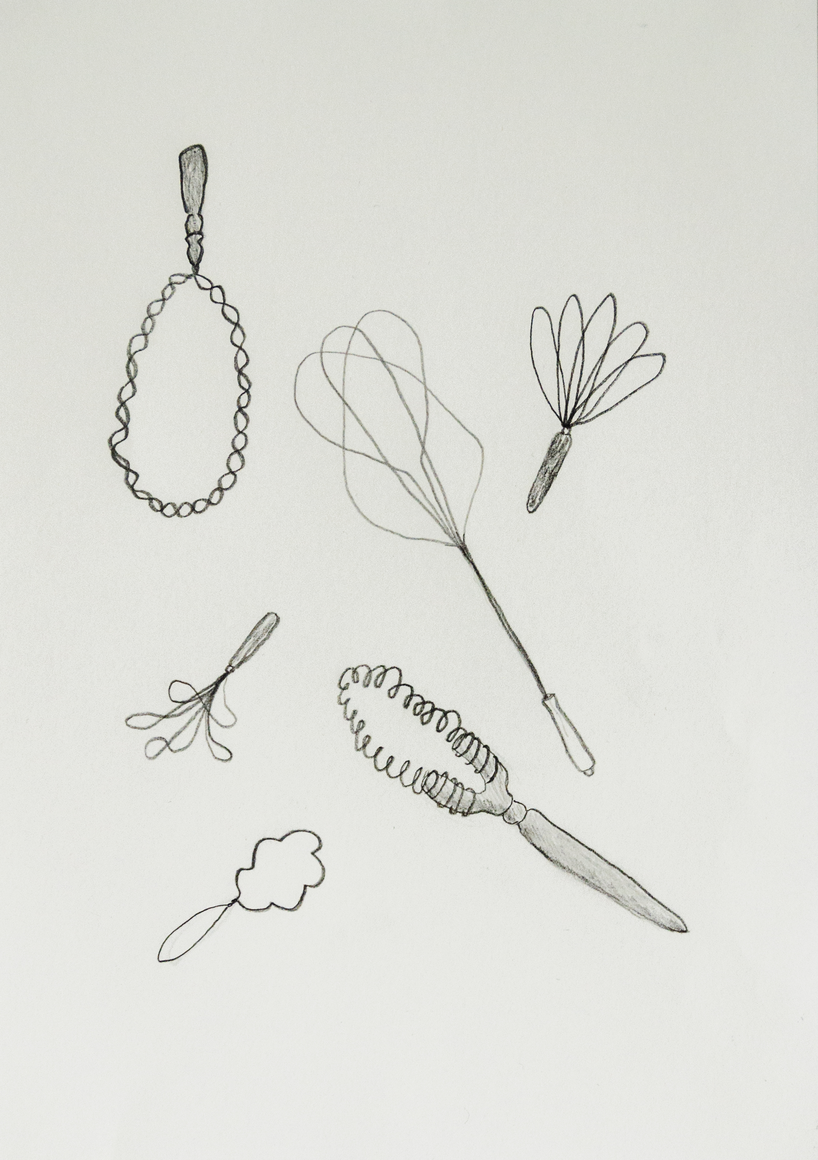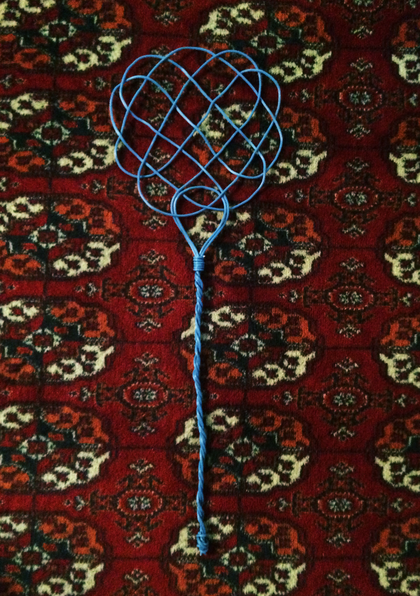 The courtyard, laundry room, and areas for beating carpets are collective facilities in the private sphere of the home. In Stockholm you can find carpet hangers in connection to many apartment blocks even though they are very seldom used nowadays. The act of whipping carpets is an act that aims to get rid of the dirt – the remnants of life. Cleaning is a repetitive work, where something needs to be done over and over again without it producing something new. The project Piskan ställningen consists of an essay, sound pieces, and sketches in different materials and is divided into three parts; the one who beats, the beater itself, and that which constitutes a stand for the beating. The various associations to the carpet hanger and the carpet beater form the basis of the project that centres around questions concerning repetition and productivity, place and time, the boundary between the public and the domestic sphere, and how dangerous the pursuit of alleged purity, hygiene, science, and light can be. Through text, sound and images, personal and collective memories, and the object's associations regarding reproductive labour, city planning, violence, the welfare project, and childish games are intertwined. The material also contains other associations to control and power – with the whip as a means of threat and punishment, and an exploration of different forms of emptiness in relation to architecture, social structures, and mental space. Through a younger and an elderly woman's narrative voice, we follow an associative thought chain that interweaves the public, the domestic, and a bodily sphere. The setting is a society where she comes home from work to yet another form of monotonous routines, where cars get burned down, and tables are placed under vases, whilst someone has been digging a hole down in the city. Through sketches in different materials, I approach the carpet beater by exploring its shape. My attempts to repeat the knots lead to a series of variations on the memory of whips where mistakes constitute the basis of new forms. In the project repetition and variations in sound, text, and drawing becomes another way of approaching repetitive work
