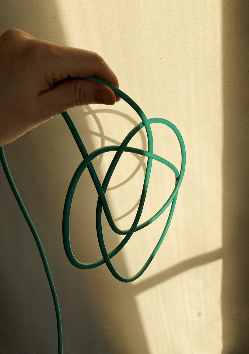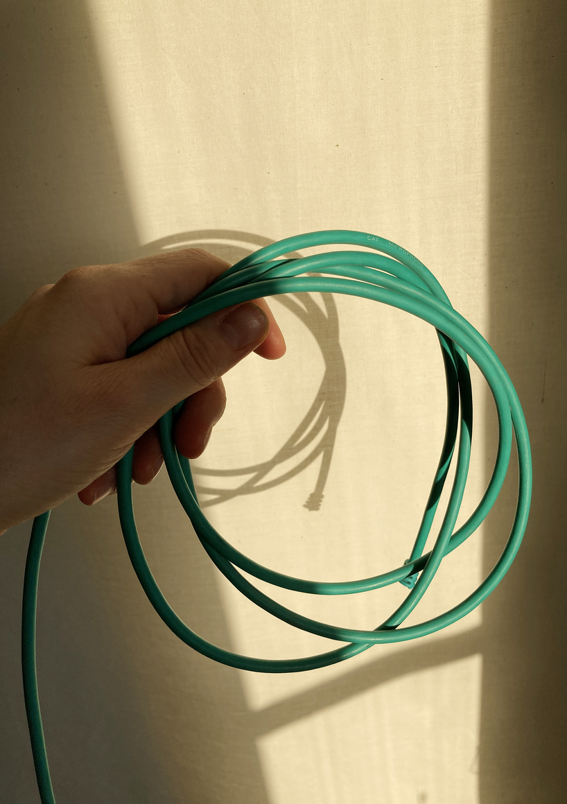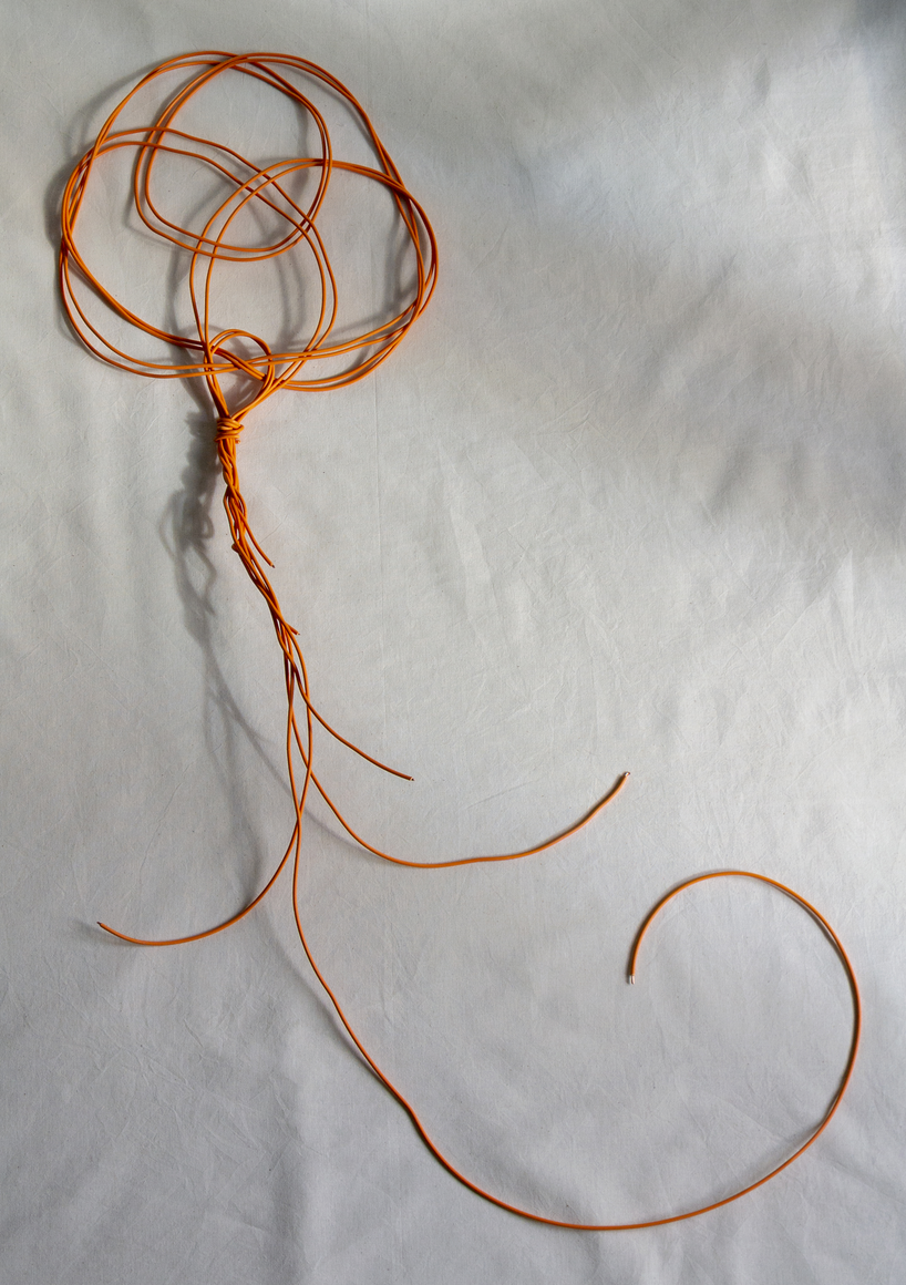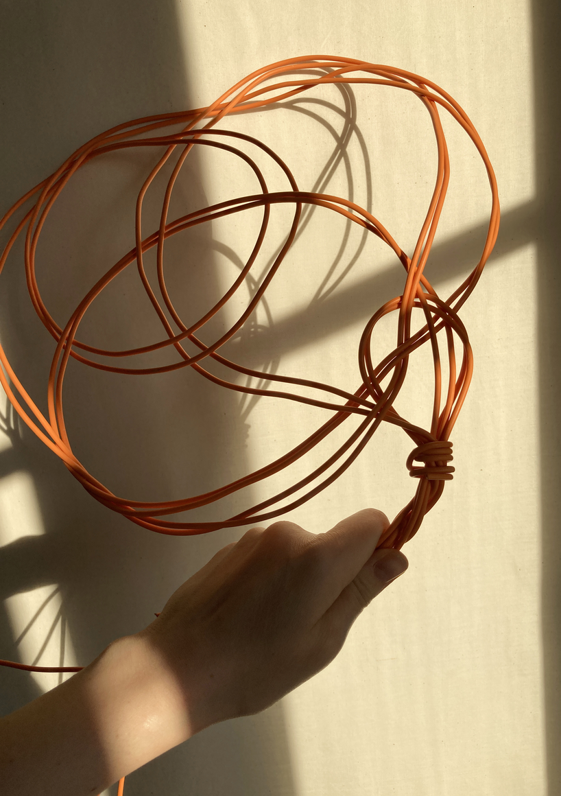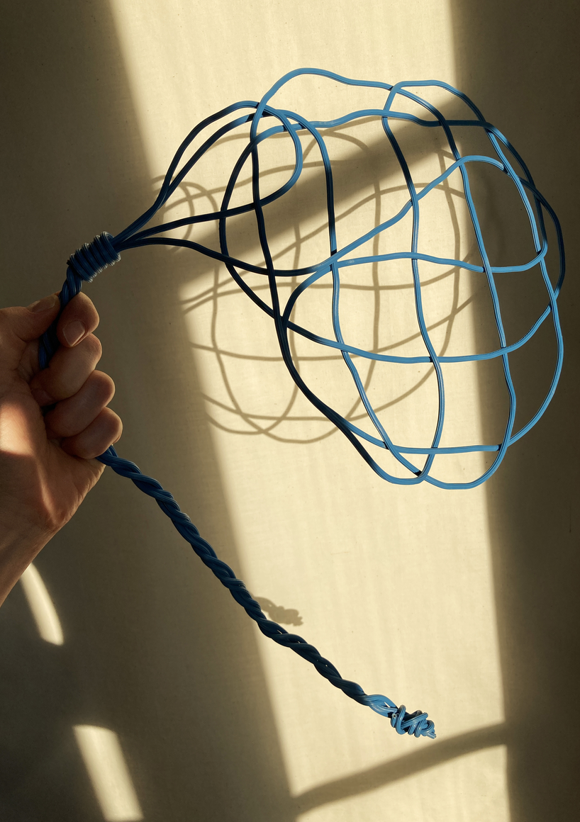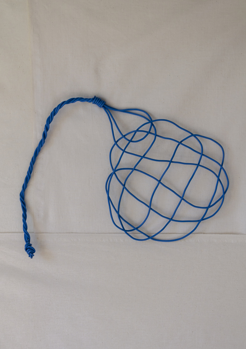 The courtyard, laundry room, and areas for beating carpets are collective facilities in the private sphere of the home. In Stockholm you can find carpet hangers in connection to many apartment blocks even though they are very seldom used nowadays. The act of whipping carpets is an act that aims to get rid of the dirt – the remnants of life. Cleaning is a repetitive work, where something needs to be done over and over again without it producing something new. The project Piskan ställningen consists of an essay, sound pieces, and sketches in different materials and is divided into three parts; the one who beats, the beater itself, and that which constitutes a stand for the beating. The various associations to the carpet hanger and the carpet beater form the basis of the project that centres around questions concerning repetition and productivity, place and time, the boundary between the public and the domestic sphere, and how dangerous the pursuit of alleged purity, hygiene, science, and light can be. Through text, sound and images, personal and collective memories, and the object's associations regarding reproductive labour, city planning, violence, the welfare project, and childish games are intertwined. The material also contains other associations to control and power – with the whip as a means of threat and punishment, and an exploration of different forms of emptiness in relation to architecture, social structures, and mental space. Through a younger and an elderly woman's narrative voice, we follow an associative thought chain that interweaves the public, the domestic, and a bodily sphere. The setting is a society where she comes home from work to yet another form of monotonous routines, where cars get burned down, and tables are placed under vases, whilst someone has been digging a hole down in the city. Through sketches in different materials, I approach the carpet beater by exploring its shape. My attempts to repeat the knots lead to a series of variations on the memory of whips where mistakes constitute the basis of new forms. In the project repetition and variations in sound, text, and drawing becomes another way of approaching repetitive work