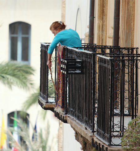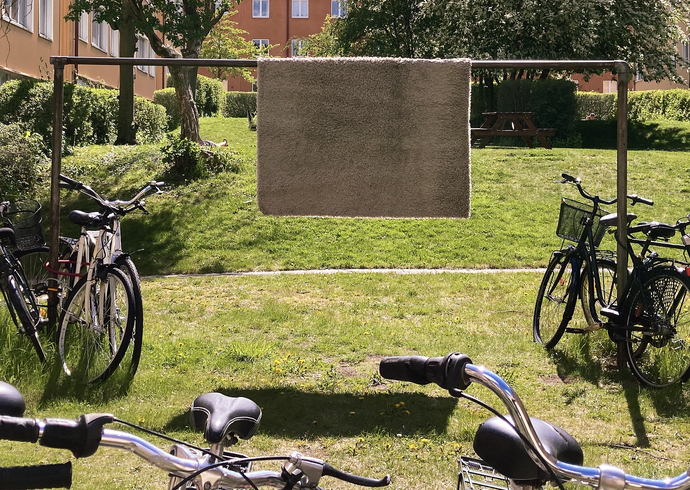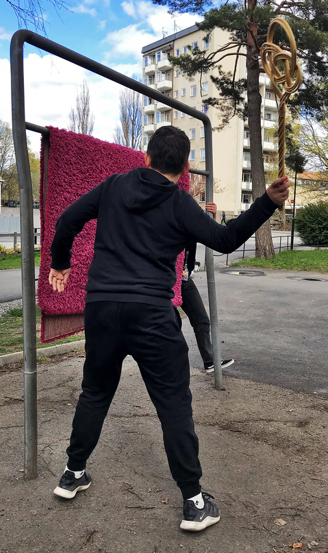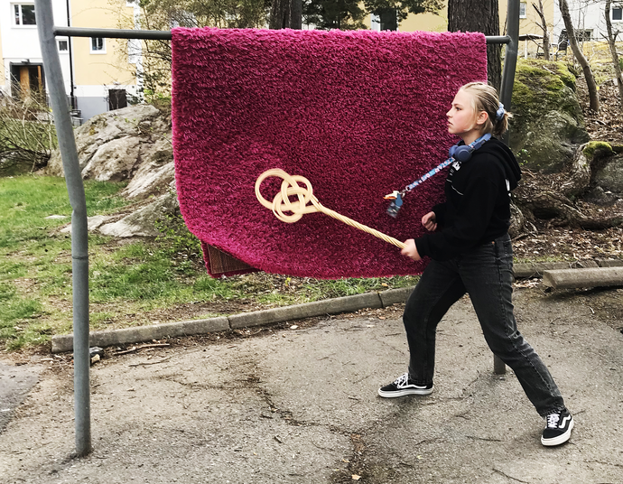 Att piska mattor är en handling i syfte att avlägsna smuts, eller för att