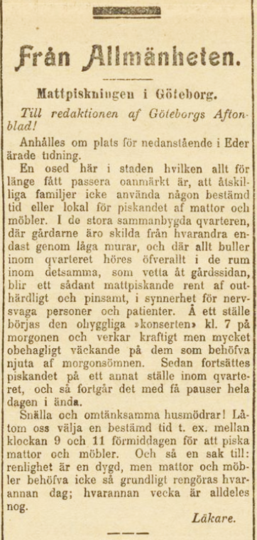 i Göteborg att skriva en insändare om det outhärdliga oljudet som är spec-