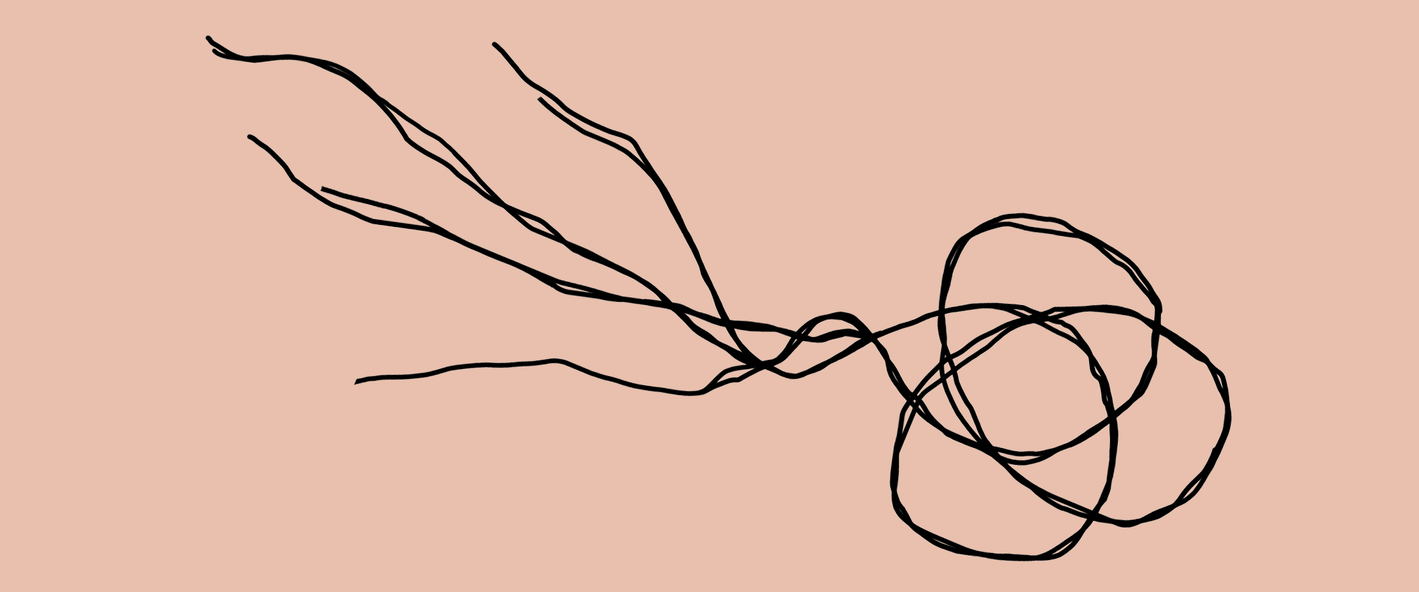 Jag knyter knutar. Repeterar knutar för att närma mig det familjära föremålet.