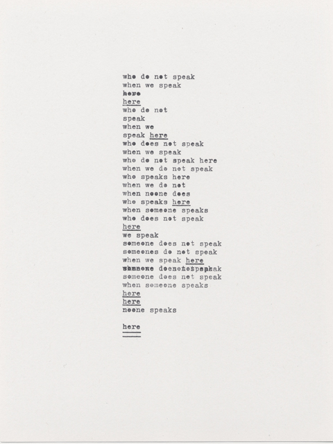 [e] Marianne Holm Hansen, Typing not Writing, 2012. Typewritten text on paper, 17 x 22.5 cm. http://www.criticalm.org