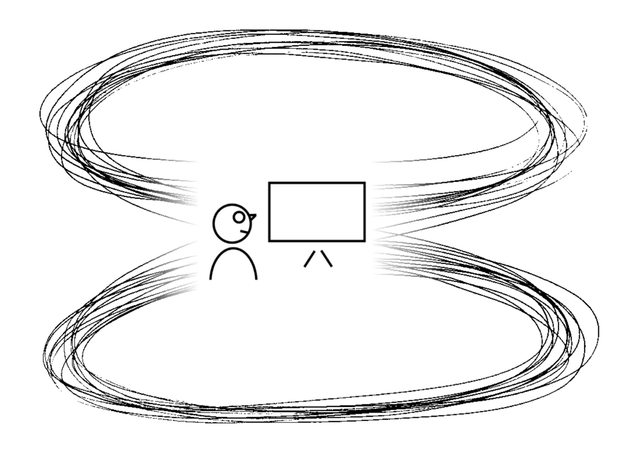 The graphic sketches the idea of a balanced working process as a phase diagram: the artist oscillates between the four quadrants following a very strange attractor, stochastic dialectic impulses are triggering new quasi-periodic states. Continuity is a simplification – jumps will commonly occur.