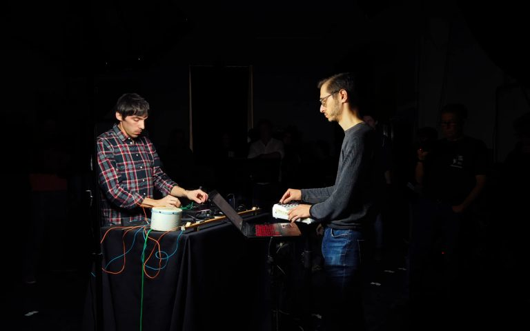 This performanc explores the phenomenon of sonic synchronization between two heterogeneous feedback systems by means of improvisation. The application of chaotic systems to creative musicking is associated with spontaneous play, since this practice can deal with the intractable traits that characterize such systems (non-linearity, non-periodicity, unpredictability, unrepeatability). Synchronization is a well-understood phenomenon where chaotic systems with different trajectories and oscillating frequencies, converge to identical ones when coupled. The “confluent currents” performance investigates this unique feature, by interconnecting two different feedback systems (analog-digital), allowing their idiosyncratic signal flows to exert influences to each other and resonate at unexpected frequencies.