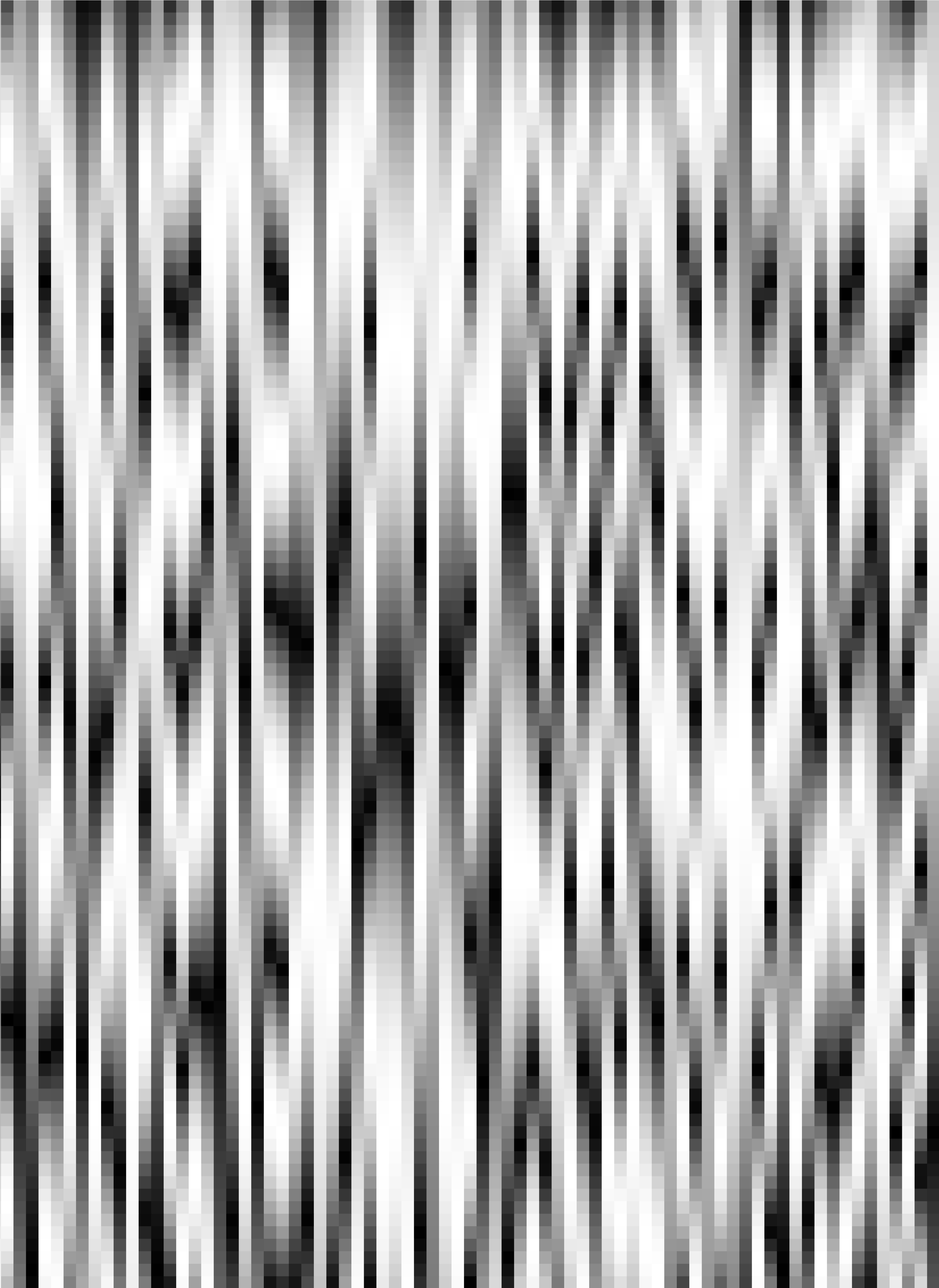 The video on the left is the visualization of a 2-dimensional grid of 192 times 192 kuramoto oscillators. Each oscillator interacts with its four nearest neighbors (left, right, up, down). The grey-scale values are mapped to the phase value of each oscillator. The oscillators are initialized with random phases.