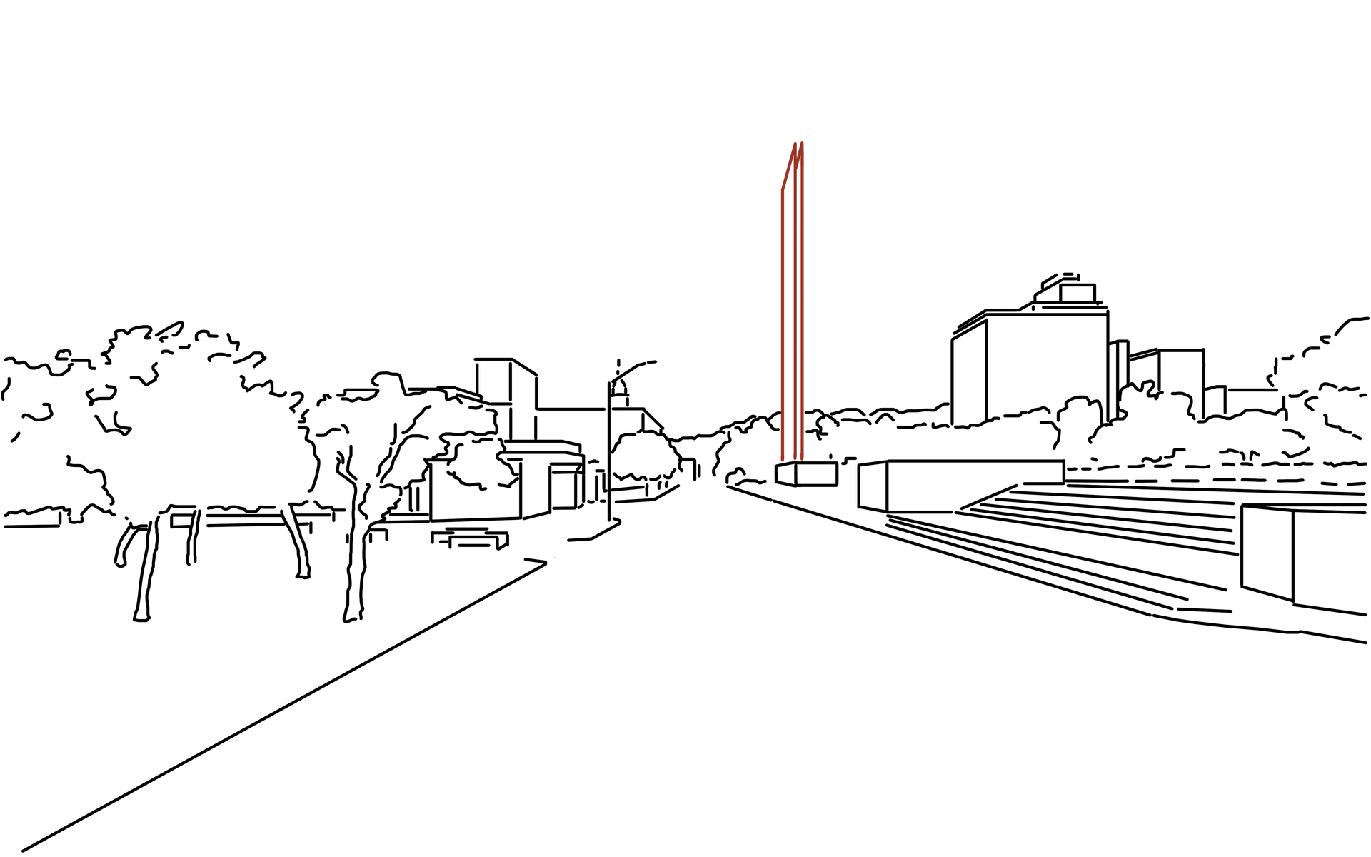 El faro del Comercio in the Macroplaza, like the Casa Valdés in San Pedro Garza García, was designed by Luis Barragán and Raúl Ferrera and built in the 1980s. This minimal rust-coloured rectangular slab protrudes from the leafy colonial plaza like a vertical line drawn with a ruler traced over the ornate and once bucolic cityscape, at once a strikethrough of the colonial architecture and a underlining, a drawing attention to, the expansive and empty public space that the city is built around.