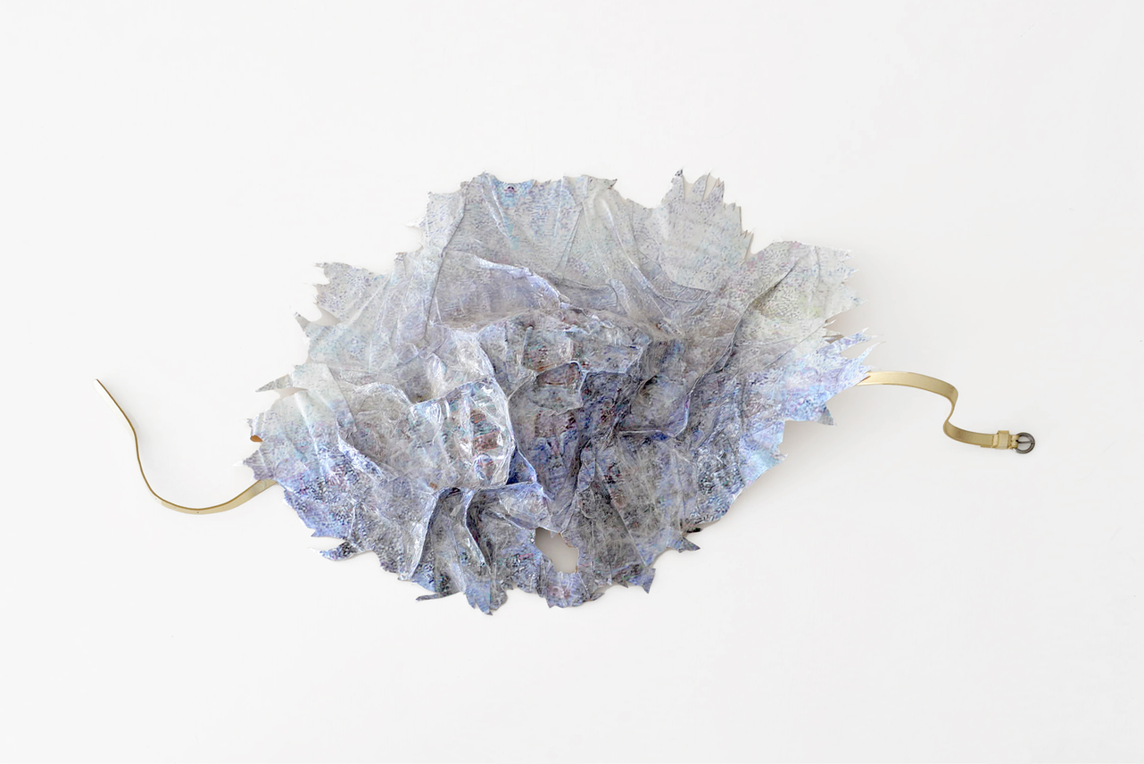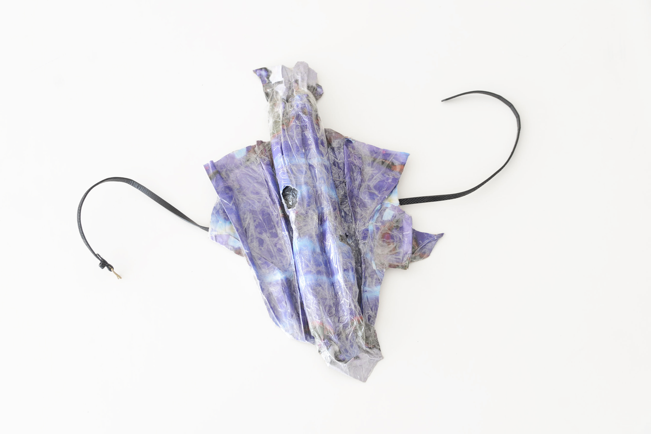 Twelve 'fake-ceramic' pieces (direct prints on paper, tape, leather belts)