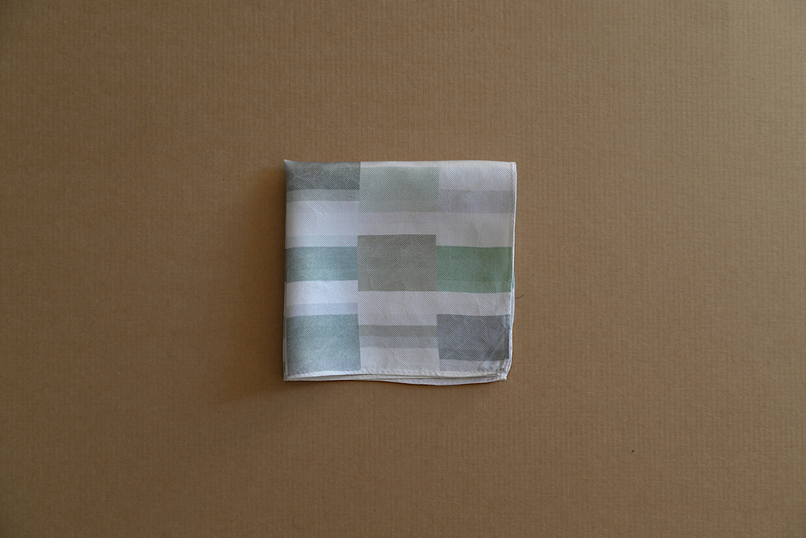 During a seaside gathering held throughout the exhibition, these objects are passed among participants, who fill them with residual waters from natural pools along rocky shores before returning them to the sea. Additionally, a color inventory database derived from the sea glass collection is translated into a series of CAD color palettes, one of which, square in shape, is then printed on a white silk handkerchief.