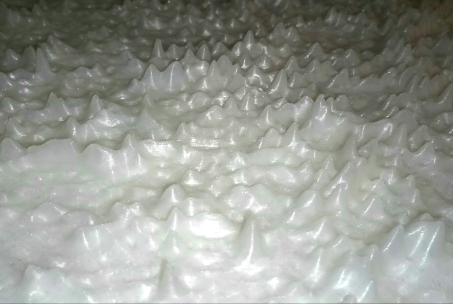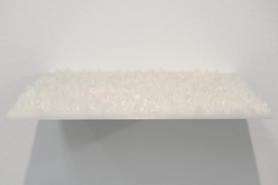 After studying various sea and wave machines throughout the scenic history of Western theatre, we realised raw miniature versions of several dispositifs. These ranged from Niccola Sabattini's helicoidal and blue hand-activated columns for Baroque theatre to Steele Mackaye's wave machine, intended for his unsuccessful Spectatorium project at the Chicago World's Fair in 1893. (Mackaye had envisioned staging The Discovery of America by creating 1/1 scale replicas of Columbus's three ships navigating a hyper-realistic stormy sea). Using these miniature machines, we animated water in a bathtub lit by two spotlights, and collected data on water movement. After modeling the data in 3D representations, an object was printed, entitled Seanography #1.