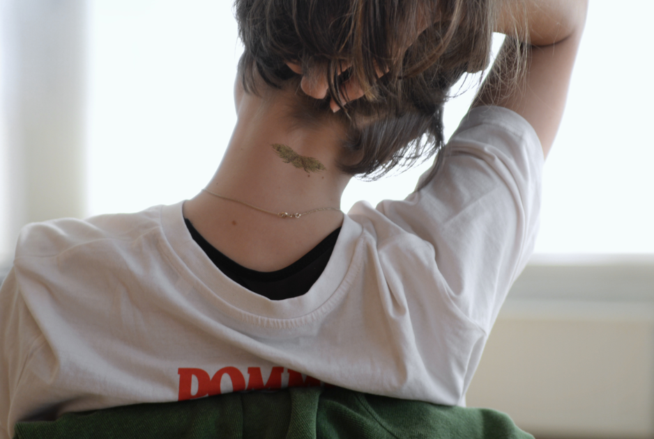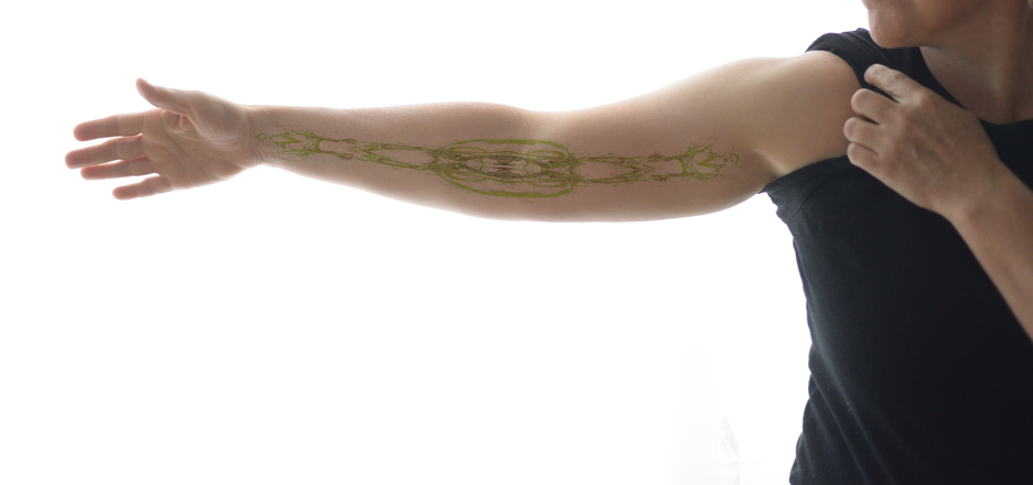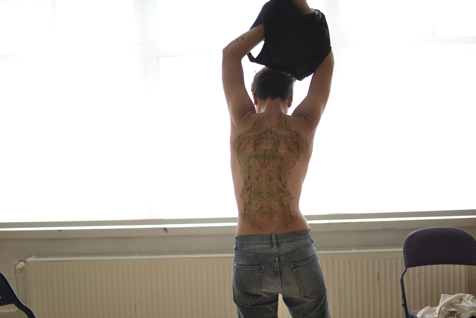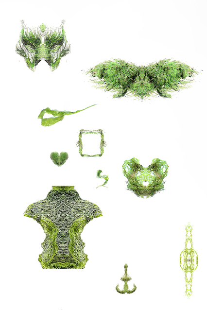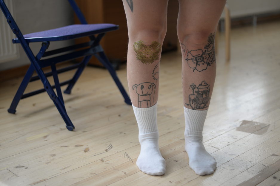 During several visits to the beach of the island Mustikkamaa with the group of students during the two weeks of the course, I collected green algae (Cladophora glomerata – aka 'mermaid's hair' or in Finnish 'viherahdinparta' - the green beard of the sea god Ahti) washed up on the shore. From the photo-documentation of these algae and assisted by computer and/or AI-simulator, I designed about ten « tatoualgues » (in French tattoo = tatouage / algae = algue), more or less evoking the above-mentioned history of tattooing in relation to the sea and sailors' practices. I then asked each participant to choose, if they wish, a tattoo from the collection and a part of their body where they would like it inked.
