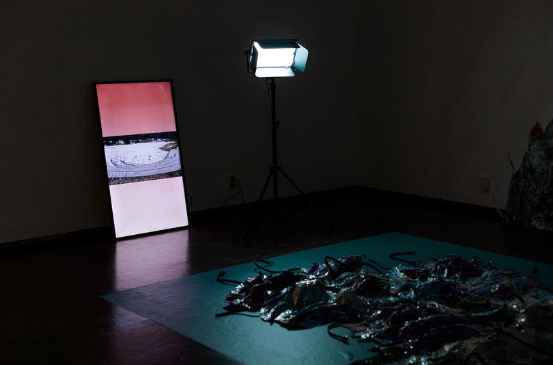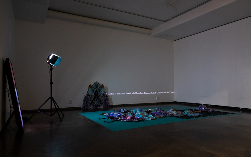 Data Ocean Theatre (D.O.T.) is a four-year artistic research project that explores the intersection of myths, Western theatre memory, new media, digital animism, climate emergency, sea and ocean transformations, queer subcultures, and technological mutations in relation to aspects of “submersion” as a contemporary living condition. Expanding on the claimed unsustainability of Western theatre’s anthropocentric foundations, D.O.T. examines how the notion and practice of the stage transform amidst climate urgency, technological hypergrowth, and discipline-fluid hybridization. It seeks to generate experiments on a new temporal ecology of the stage, examining how theatre-making infrastructures might transition within a multi-agential dynamic of emergence. D.O.T. appears, disappears, and reappears through a series of polymorphic artworks and research affordances based on the ecodramaturgical consideration of the simultaneous phenomenon of 1. the rising sea and ocean levels, 2. the exponential growth of big data in our informational age, and 3. the emotional overload caused by the latter two happening, projection, and prophecy. D.O.T. explores inherited sea-and-ocean-oriented myths and revisits theatre plays with a marine backdrop, looking simultaneously into contemporary nautical vocabulary and sea imagery used as metaphors for computational realities. D.O.T. proposes to re-mythologise Western theatre foundations by forming an alternative pantheon for a queer, hydrofeminist, and technoanimist reset of the “tragic,” at the interplay between a syncretic marine mythology and the ambiguities of “technology-as-monster” narratives. In D.O.T. project, the forces and fragilities of transforming marine ecosystems intersect with algorithmic-conditioned life and crossbreeding of diverse art disciplines and research fields based on collaborations, generating imaginary prototypes for future societal constructions in the floods. D.O.T. is structured around several key components: the prologue Simultaneous Environments, featuring a series of experimental works; the central project Tragedy and the Goddexxes, which culminates in three public exhibitions; and a series of workshops, residencies, and a final publication in the form of an exposition on the Research Catalogue. This final publication of the DATA OCEAN THEATRE postdoctoral artistic research project (2021–2024) titled 'DATA OCEAN THEATRE (OUT OF THE BLUE); A Discipline-Fluid Postdoctoral Artistic Research Project Exposition' performs on the Research Catalogue as both an aesthetico-epistemic object in its own right and as an a posteriori account, or catalogue raisonné, of the project. It also acts as a supplement to the author's doctoral publication, Reacclimating the Stage (Skenomorphoses), completing the latter to form a diptych on the Research Catalogue. Similar to the doctoral publication, the non-linear, non-hierarchical, and non-chronological reading, or hyper-reading, of Data Ocean Theatre (Out of the Blue) invites its visitors to navigate freely and compose their own fluid, archipelagic, and tidal experience to make sense of the project as a whole.