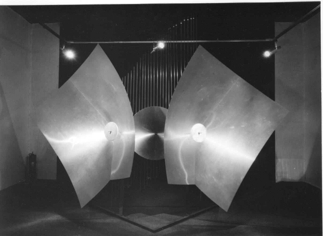 Even the first sound sculpture by the Baschet brothers, Sound Structure With Bow and Balloon (1955), featured weights along the rods’ lengths, indicating that the entire system was likely tuned to a specific (recognizable) scale. Unfortunately we only know that it was intended to be played with a cello bow, and it was dismantled and its components reused in other sound sculptures.