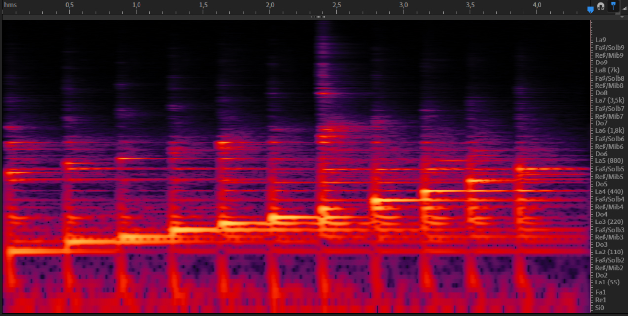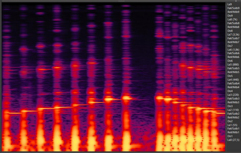 Gamut: One full octave of diatonic F# major scale. Displayed low to high. We can hear some overtones of some plates that resonate louder.