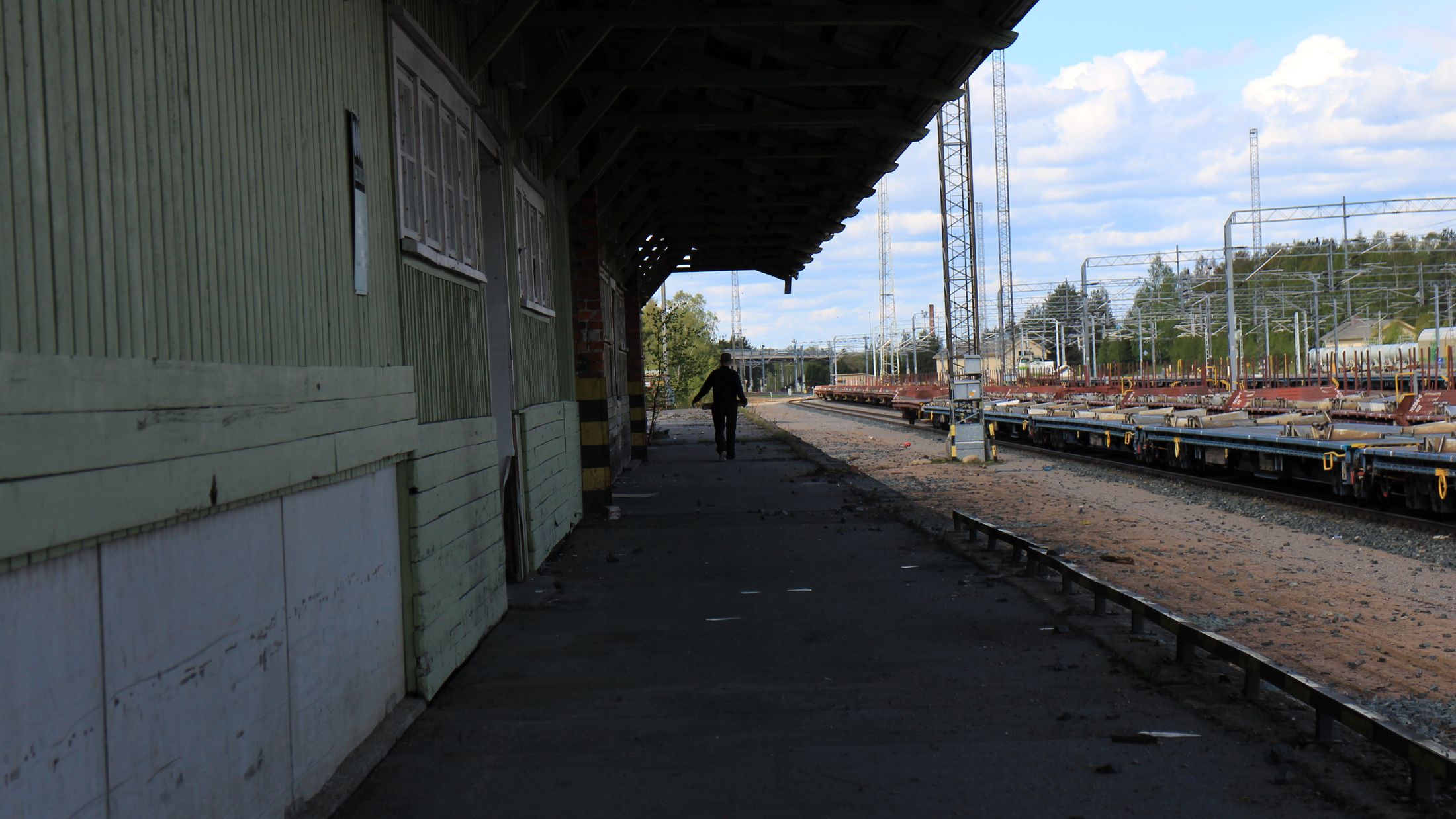 Kierrän veturitalleja ja kuvaan materiaalia älypuhelimellani. Aurinko paistaa. Ilma on kuumaa ja viileää peräjälkeen. Puulanssi on hiljainen. En näe ketään, paitsi muutamia ihmisiä pyöräilemässä kauempana sillalla. En kuule muuta kuin varisten raakkumista.