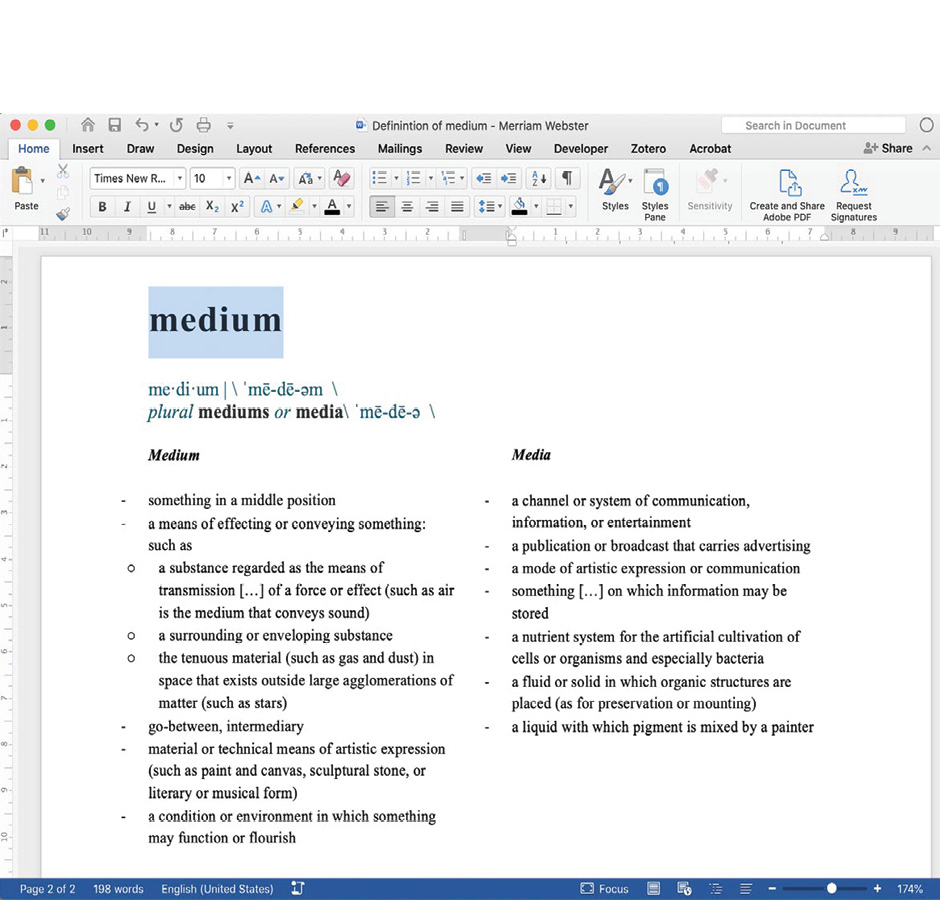 Merriam Webster Dictionary. Definition of ‘medium’. [Online] [Accessed 18 5 2020].