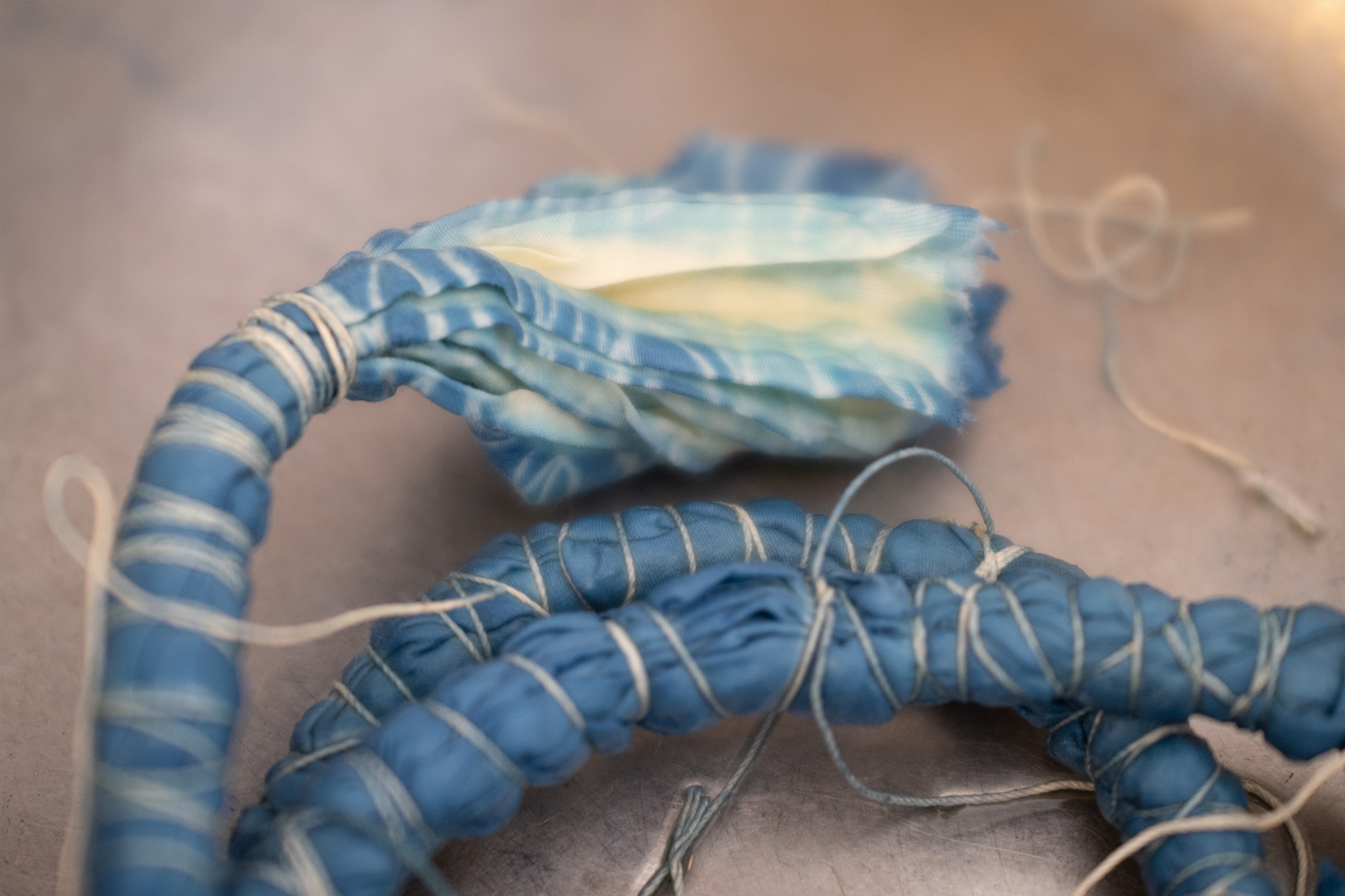Photo: Cloth prepared for shibori (resist dyeing)