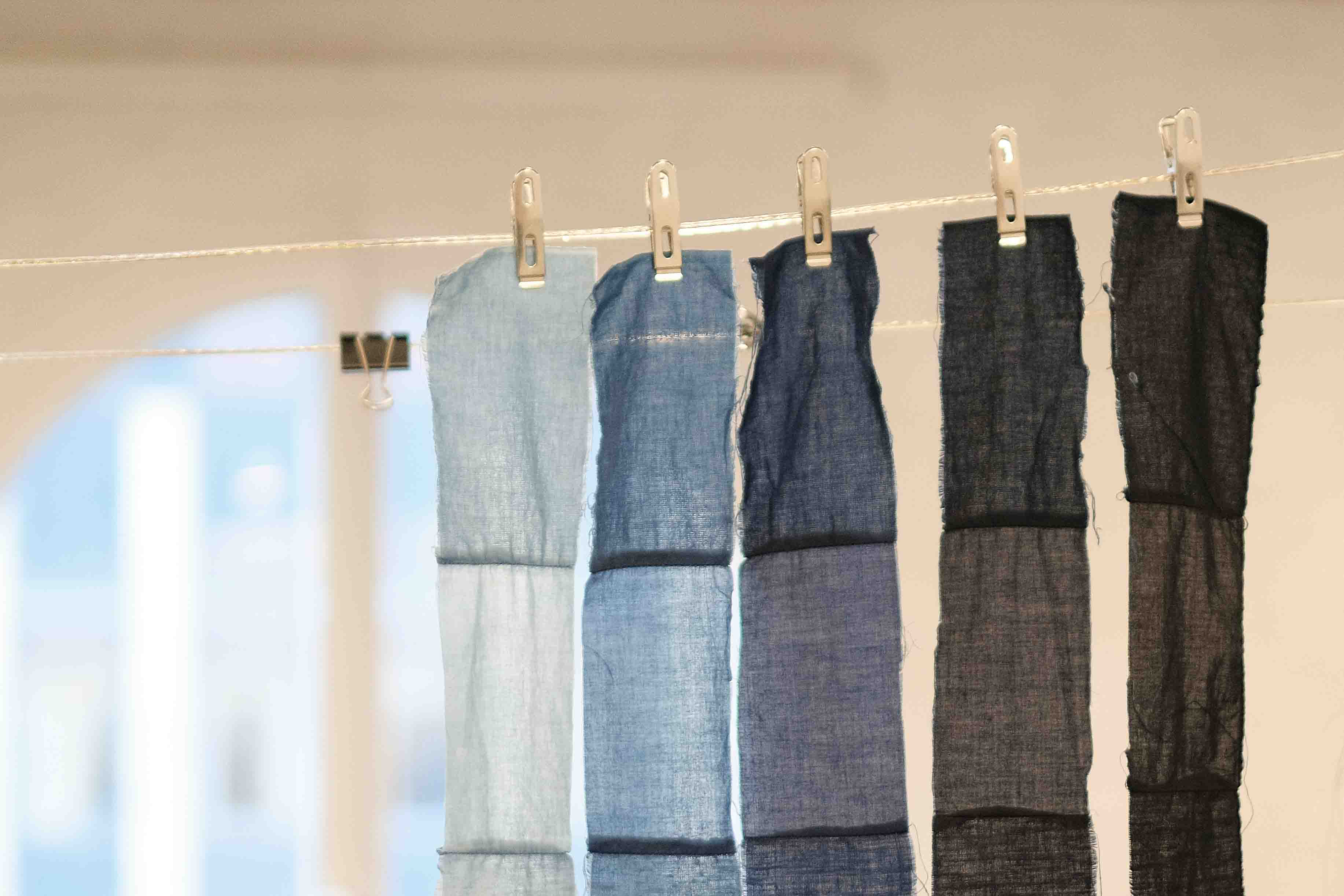 Photo: Drying indigo-dyed samples