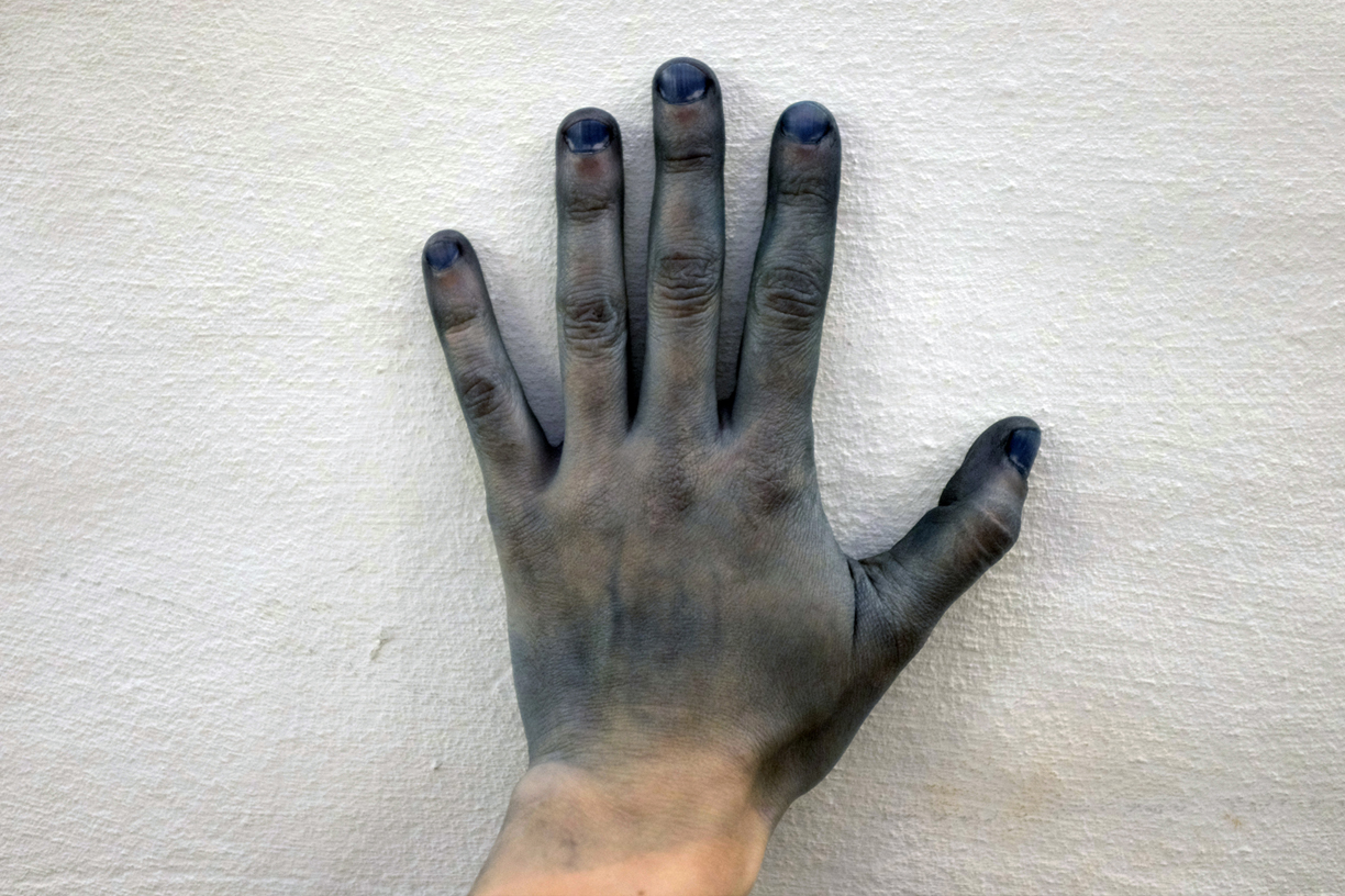 Photo: Blue hands are the trademark of an indigo dyer.