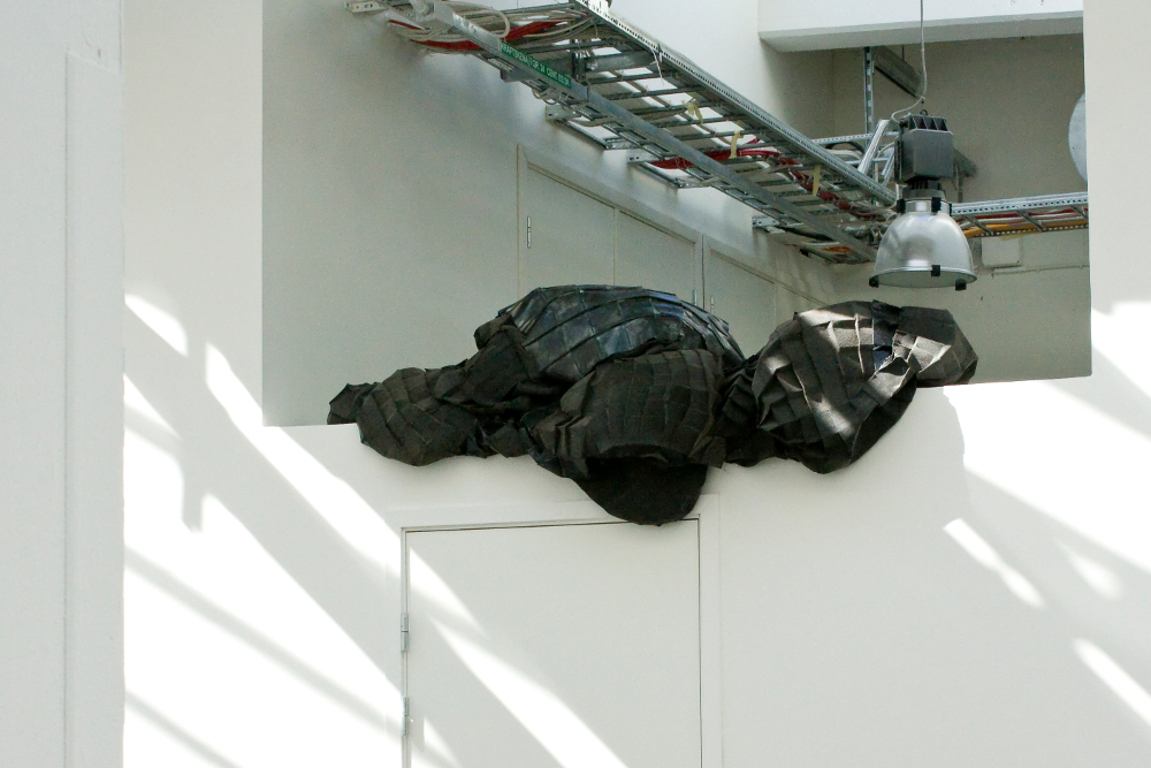 In my work, roofing felt used as sculptural material takes on new meaning as skin and shelter, container and architecture, body and surface. Body becomes building and building becomes body.