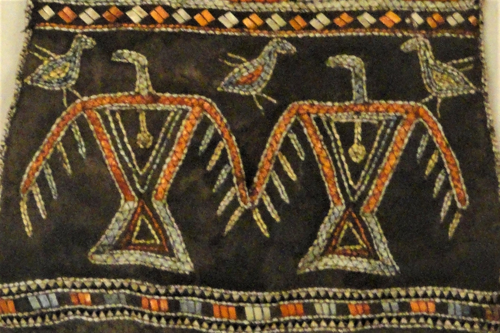Ojibwe shoulder pouch depicting two thunder birds in quillwork (Peabody Museum Harvard) (Image cropped from here)
