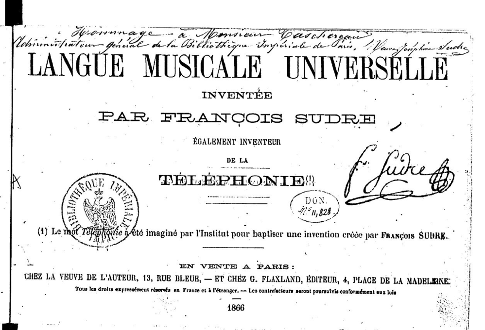 François Sudre published the Langue Musicale Universelle (Sudre 1866) with the goal of creating a language for all people of the world. He was influenced by many predecessors who believed that a common language would unite peoples, returning to a time before the fall of the Tower of Babel when ‘the whole earth was of one speech’ (Genesis 11:1). Inspired by Rousseau’s assertion that ‘the first languages were singing’ (Wokler 2001: 38), he determined that music would be the key to his quest, stating that ‘Nature accords all men an intelligence sufficient in all circumstances to comprehend similar sounds’ (Whitwell 2012: 37). His system, known as Solresol, represents words by using the seven notes of the C major scale – do, re, me, fa, sol, la, ti - in four-note groups. The system also includes the use of colours or symbols as an alternative to musical notes, as he was motivated by a desire for universal communication that would include deaf people. Despite the fact that he worked on the project for decades and spent much of his own money, it faded into obscurity after his death (Collins 2002). However, there has been a resurgence of interest in this language in recent years, as evidenced by the appearance of online resources such as dictionaries, translators, user groups, and websites.