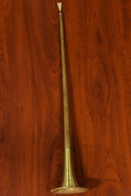 Sornas and sorna-like instruments exist throughout the world. The earliest known examples stem from Persia in the 6th century BCE, and the prevalence of similar instruments from China (suona) to Turkey (zurna) to Europe (shawm, and later oboe) suggest that they spread through the world from there (Miller 1999: 272). Sornas (and their cousin instruments) typically consist of a trumpet-like tapered tube with a double reed mouthpiece, frequently with a small plate around the reed to allow the mouth to cover it entirely. They are typically very melodic instruments, and the high degree of backpressure that the reed creates allows performers to play for long, uninterrupted stretches, even at high volume, making it ideal for many forms of folk music, especially outdoors. The sornas that I produce are quite different from those, though, for various reasons. For one, mine are metal (brass), as opposed to wood. More importantly, the bore and taper of the bells that I repurpose are smaller and longer than a typical sorna. Even more critically, the randomness with which I drill the finger-holes ensures that the resulting melodic and harmonic potential of my trumpets-turned-sornas are unpredictable and frequently unstable. The sonic results would be unrecognizable to any traditional sorna (or zurna, or suona) player.