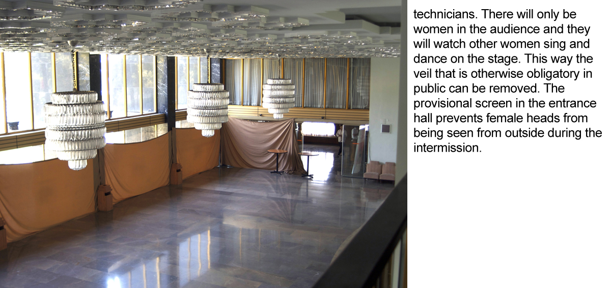 ‘staats-theater: Lagos/Teheran/Berlin’ is a modular art and research project initiated by Berlin based video artists Daniel Kötter and Constanze Fischbeck in collaboration with performers and architects from Lagos, Tehran, and Berlin, as well as the collective Hunter & Gatherer (Manuel Shvartzberg and Fabian Faltin). The project undertakes an exemplary investigation of the state-representational and socio-political conditions of theatre and the opposing informal potential of performativity in three capital cities: Lagos (Nigeria), Tehran (Iran) and Berlin (Germany).