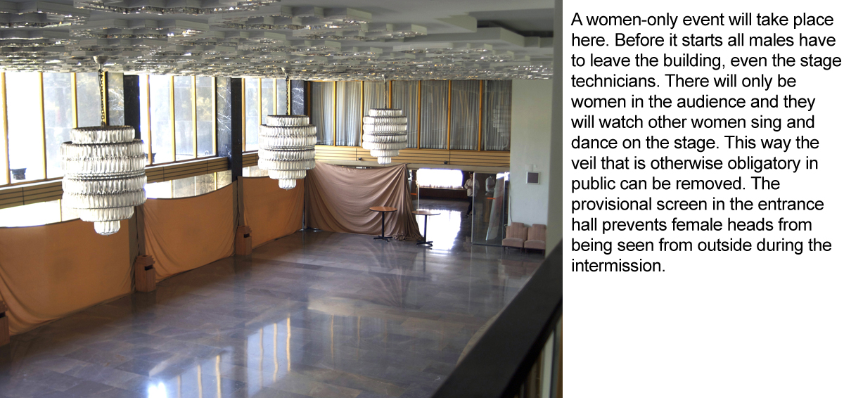 ‘staats-theater: Lagos/Teheran/Berlin’ is a modular art and research project initiated by Berlin based video artists Daniel Kötter and Constanze Fischbeck in collaboration with performers and architects from Lagos, Tehran, and Berlin, as well as the collective Hunter & Gatherer (Manuel Shvartzberg and Fabian Faltin). The project undertakes an exemplary investigation of the state-representational and socio-political conditions of theatre and the opposing informal potential of performativity in three capital cities: Lagos (Nigeria), Tehran (Iran) and Berlin (Germany).