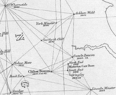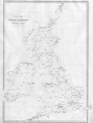 For example, the seven-mile long ‘Salisbury Base’ on the Principal Triangulation of Great Britain is the original baseline, measured in 1794, from which the Principal Triangulation commenced. (The five-mile long Hounslow baseline measured in 1784 appears not to be on the map.) In 1824 the survey of Ireland was started, which in 1827 utilized another baseline in the north at Lough Foyle. According to T. Pilkington White’s report from 1886, when compared to the ‘Salisbury Base’, it “differed from the measured length by less than five inches”. [8] In other words, the Principal Triangulation of Great Britain, although quite accurate, was not perfect and was subsequently replaced by the more exact 1935–1962 Retriangulation of Great Britain.