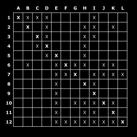 The matrix map is displayed on the right. They can be experienced on the page 'Sample Matrix' as well as in Rebody's Installation Version, where all 56 combinations are played one after the other.