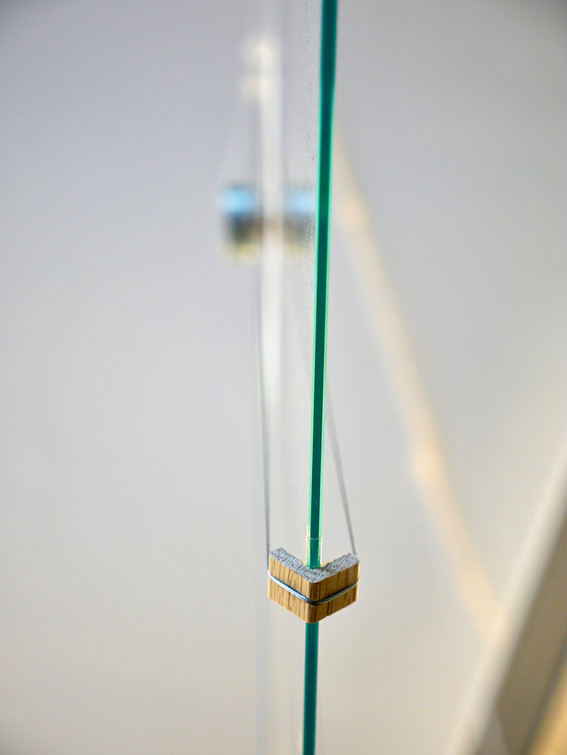 Glassplatene er fordelt på to ulike størrelser som står i relasjon til menneskekroppen; ni små plater som står i forhold til hjerte og hode, og åtte større plater som står i forhold til torsoen. Når en går mellom platene eller vender seg direkte mot en plate, er følelsen av lyden som vibrerer overskridende, den er ikke bare i glassplaten i seg selv, men flyter ut i rommet og inn i kroppen. Å være inne i dette lydlandskapet er en opplevelse som både tar i en fysisk og mentalt.