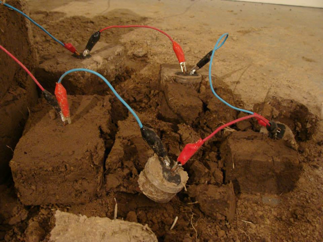 La obra consistió en extraer la energía de la tierra mediante celdas microbianas terrestres DIY construidas en forma de ladrillos realizados a partir de plástico biodegradable, barro y desechos orgánicos. Con el trascurso del tiempo, las bacterias presentes en las celdas empezaron a accionar metabolizando el sustrato orgánico interno de los ladrillos. De esta forma, tuvo lugar un proceso de descomposición y proliferación de más cantidad de dichos microorganismos. Esto produjo una evolución energética, al incrementarse el voltaje a partir del proceso electroquímico generado en las celdas microbianas. Para favorecer su desarrollo, el sistema contó con un tornillo de Arquímedes, mecanismo responsable de humidificar los ladrillos para la correcta interconexión de los electrodos, pero también para posibilitar el regreso al estado de naturaleza de los elementos utilizados para la construcción. El agua contribuyó a la conductividad del proceso, a la proliferación y mantención de los hongos y bacterias y, asimismo, a la desintegración de los ladrillos, produciendo un cierre de ciclo al quedar finalmente borrada la huella de la obra.