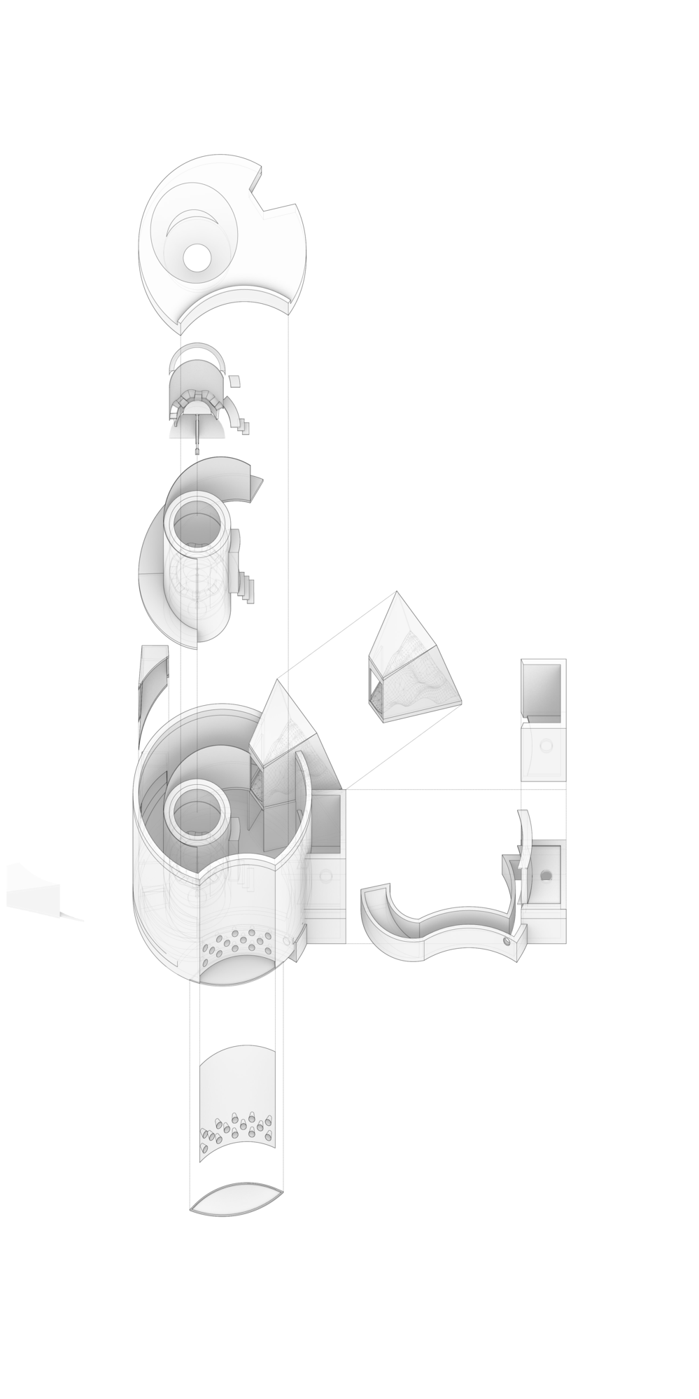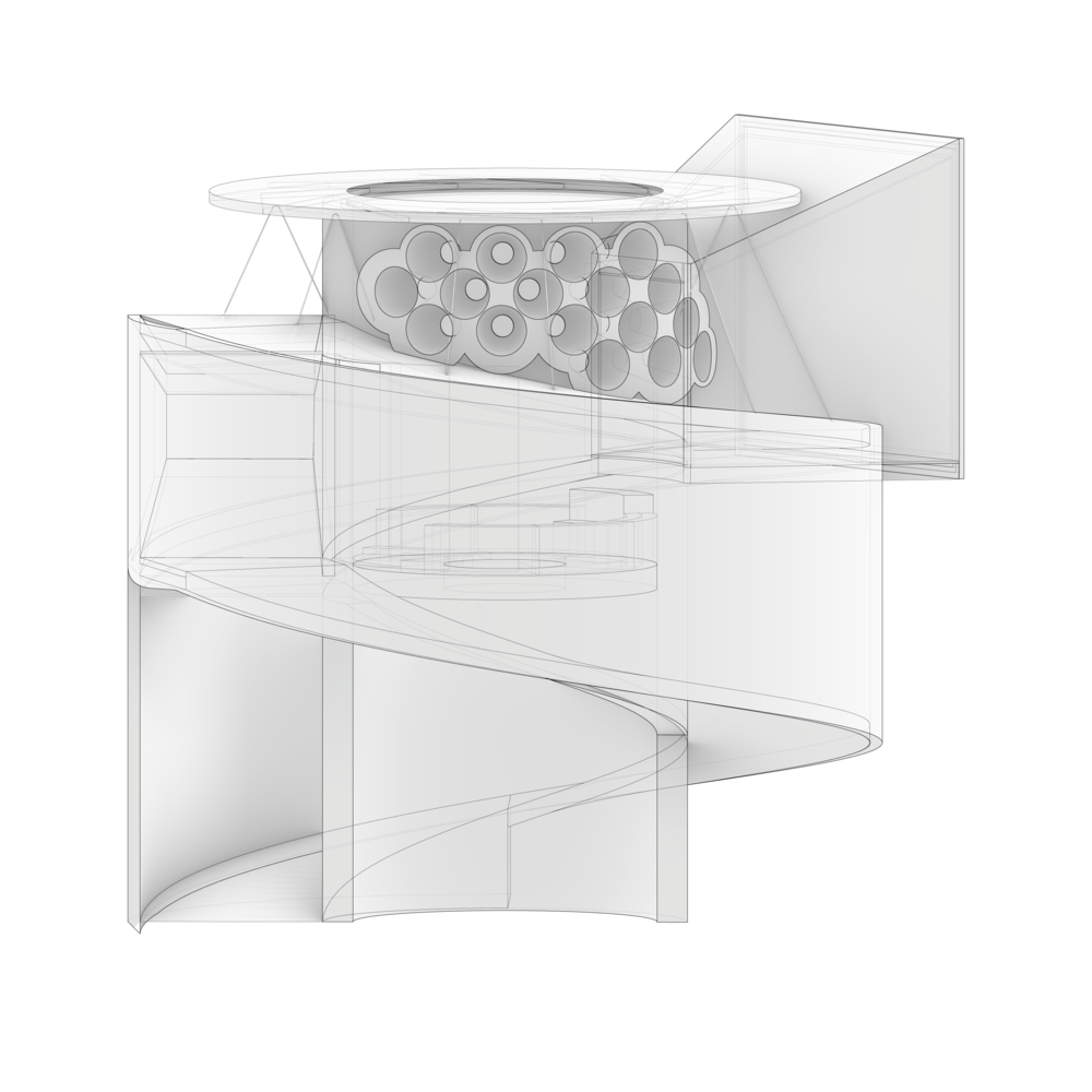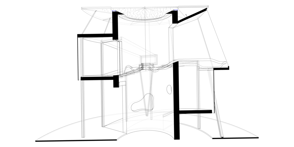 fase 4_ en la cuarta fase de diseño se explorar con un diseño unificado e integrar todas las propuestas en un mismo modelo arquitectónico, de forma que este puede entenderse como un único elemento compuesto por distintos espacios que tratan de ofrecer una distinta forma de relación con el entorno.
