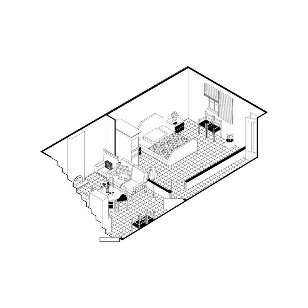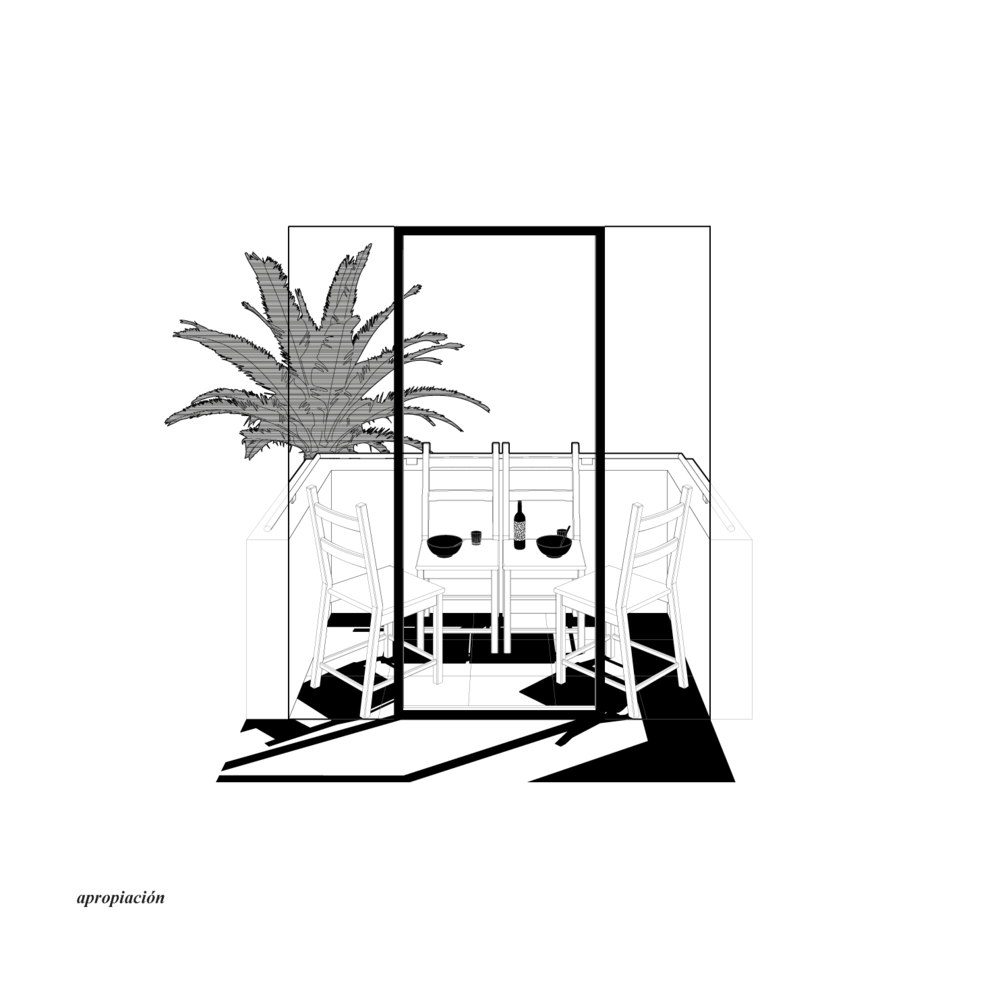 /se obtiene una vivienda de espacios concentrados, personales y personalizados. la vivienda se reduce a necesidades esenciales que, en gran instancia, se ven reflejadas en su mobiliario y elementos que configuran el propio espacio habitado, el hogar/