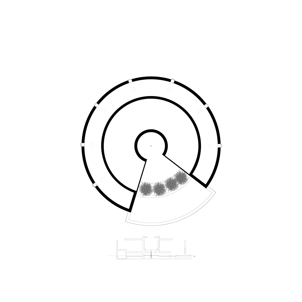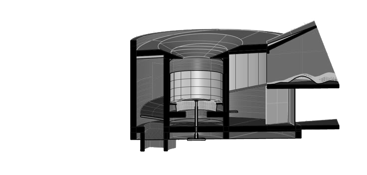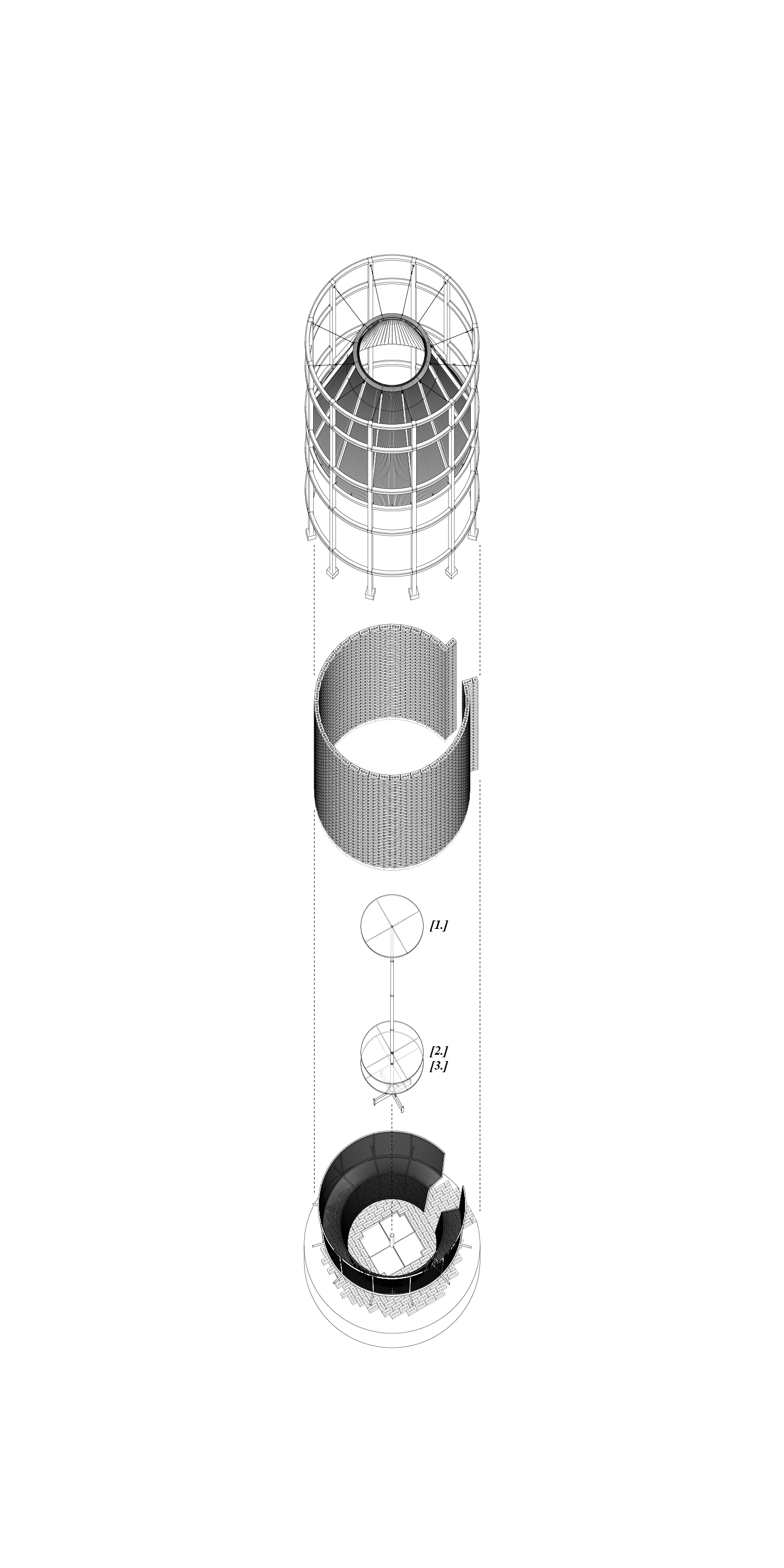 /se propone un espacio exterior, abierto, en consonancia con las características de un patio de vivienda. Este modelo está basado, principalmente, en aquellos recuerdos relacionados con la mesa camilla. En él, igual que sucediera en torno a la mesa, el tiempo gira alrededor del propio elemento: el sol penetra por el óculo central para recorrer sus paramentos interiores, dibujando su silueta a la par que marca el trascurrir del día, lento pero constante. De este modo, el recorrido solar no es perceptible de forma continua, sino que sus estadios dependen de la habilidad del espectador para apreciar su variación.