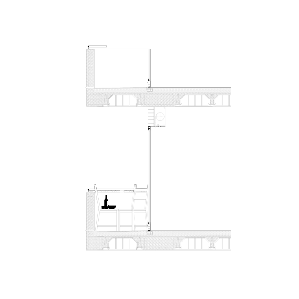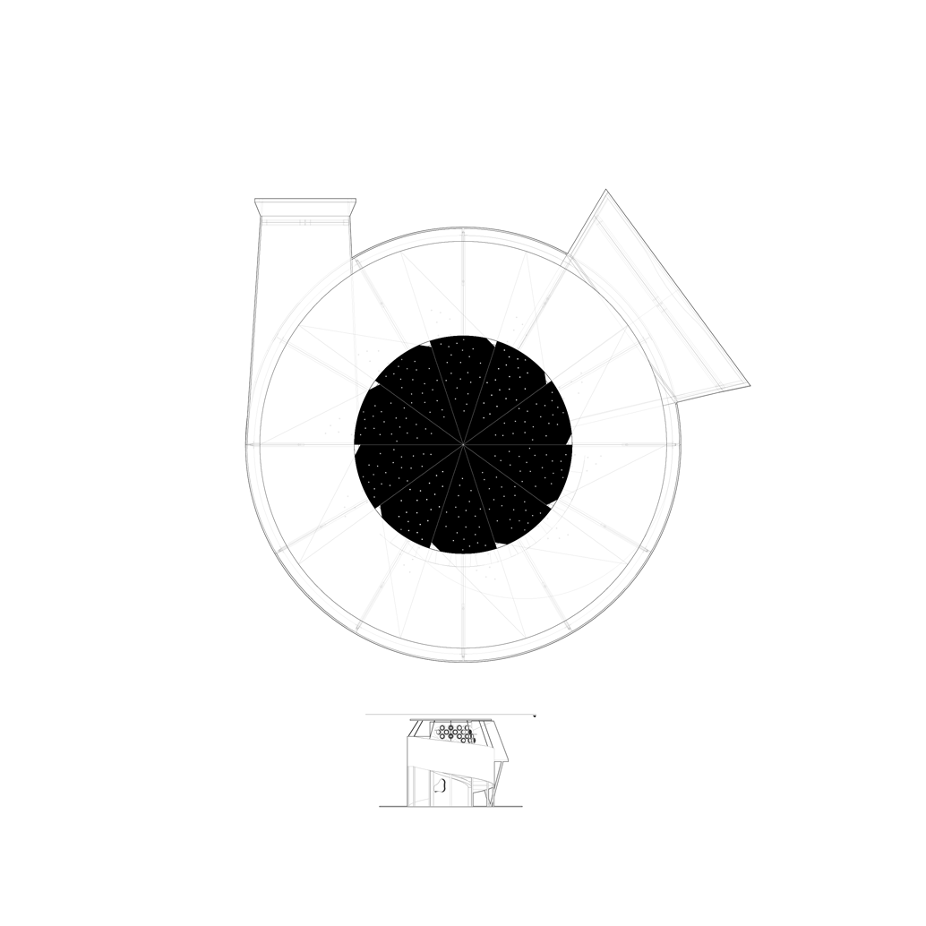 Por otro lado, igual que sucede en el elemento arquitectónico original, el espacio de entrada produce una compresión espacial que da paso a una apertura superior, de este modo se potencia la altura del propio modelo. Esta apertura permite ver realizada la ensoñación del niño que se asomaba al interior de la chimenea tratando de alcanzar a ver el cielo al fin de su conducto de salida/